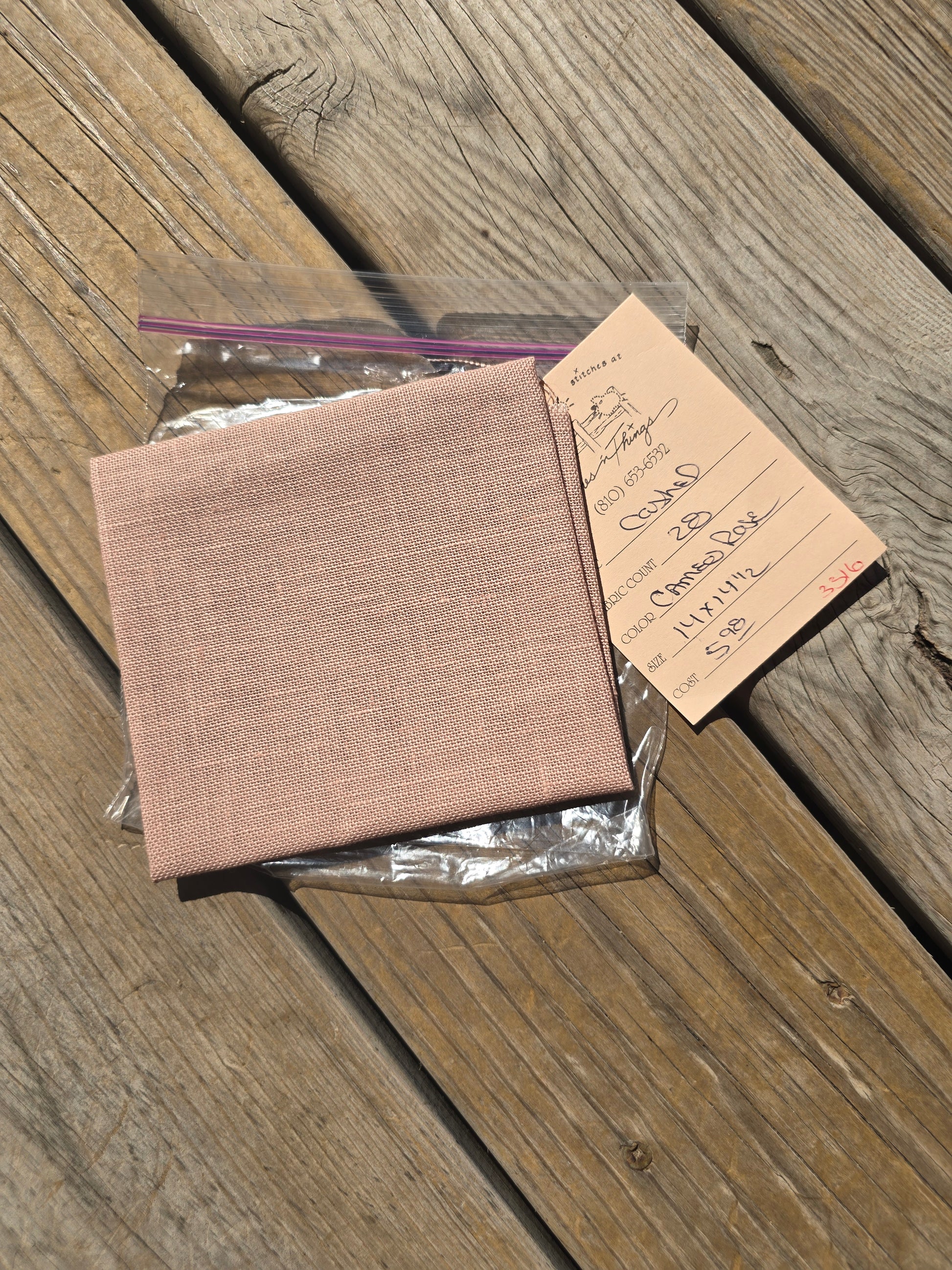 Cameo Rose 28 count Cashel cross stitch cloth. Approximate size: 14" x 14.5". Estate find. Like new in original package. Package opened to confirm size. Color may vary from photo.