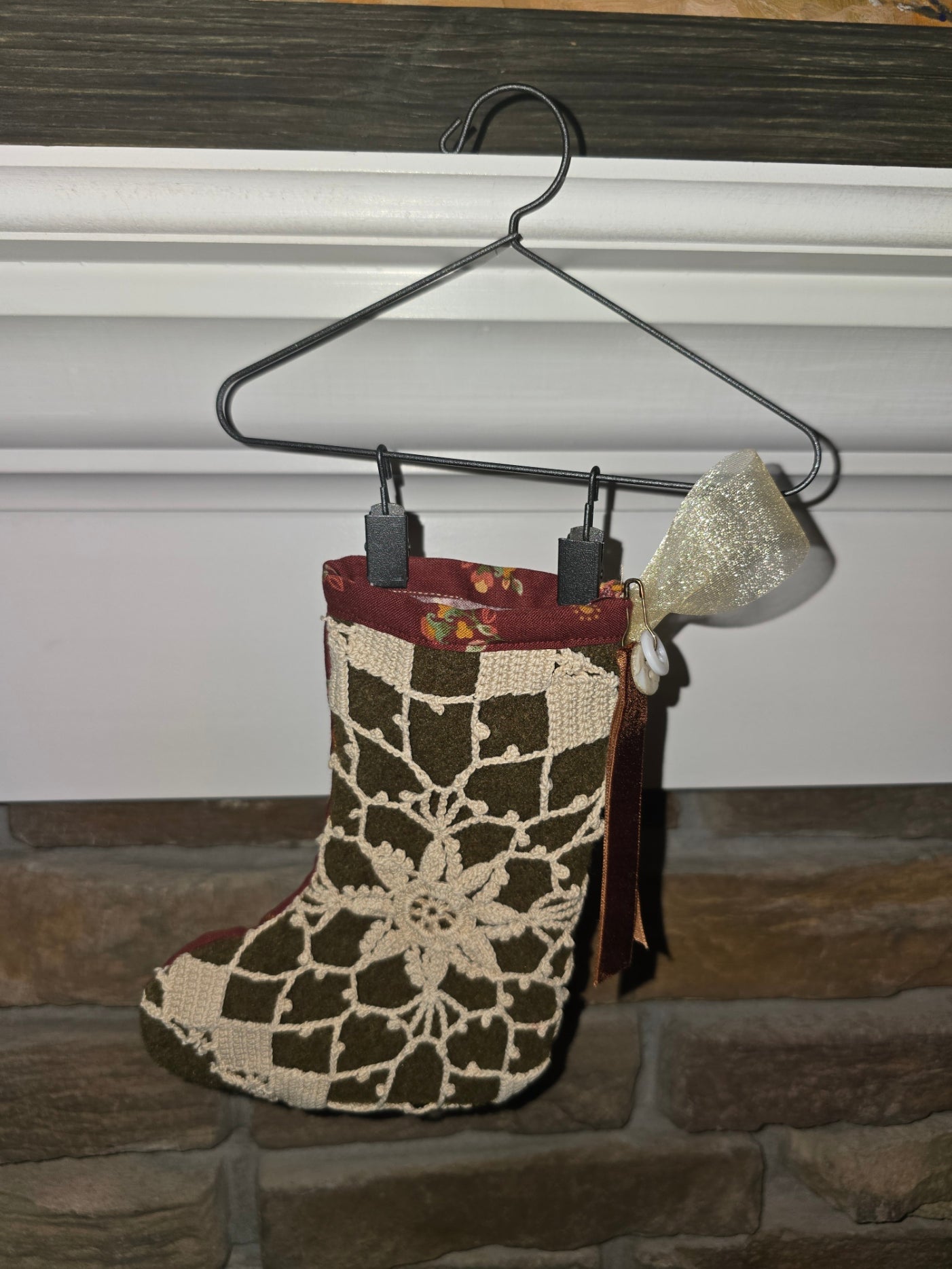 6in Hook Top Open Center Hanger with or without two clips. Ackfeld Manufacturing. Size: approximately 1” x 6”. Show off needlepoint, cross stitch, quilt blocks and more with this delightful display. New product. Stocking not included.