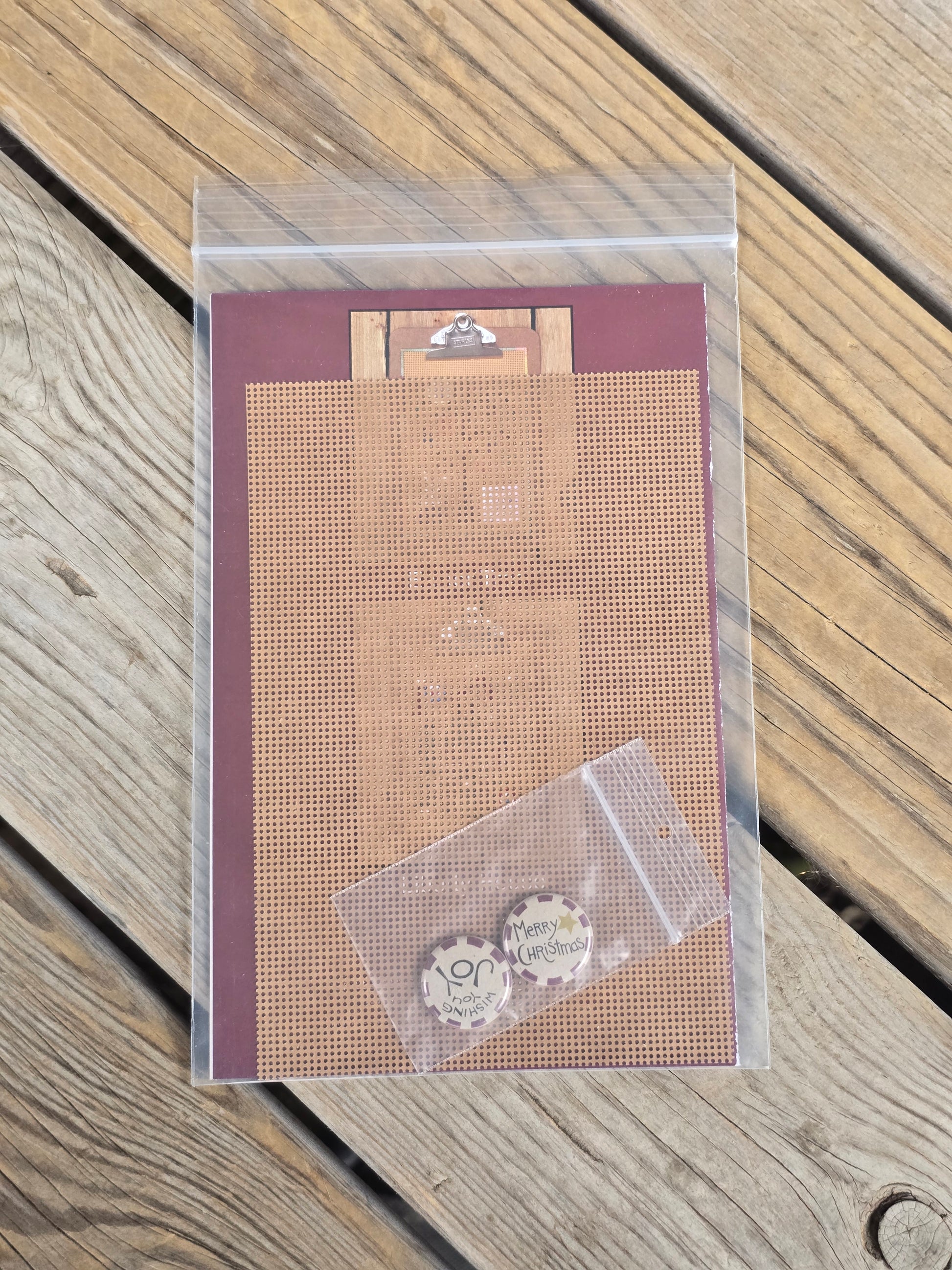 Clip Art - Merry Christmas cross stitch kit. Bent Creek 2008. Kit includes chart, perforated paper and two pins. Estate find. Like new in original package.