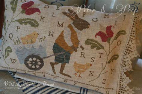 Peter & Peep pattern by Brenda Gervais. Country Stitches - With thy Needle & Thread 2012. Stitch count: 215W x 140H. Worked over 2 threads. Estate find. Like new. Light pencil marks indicating size when using 32ct fabric.