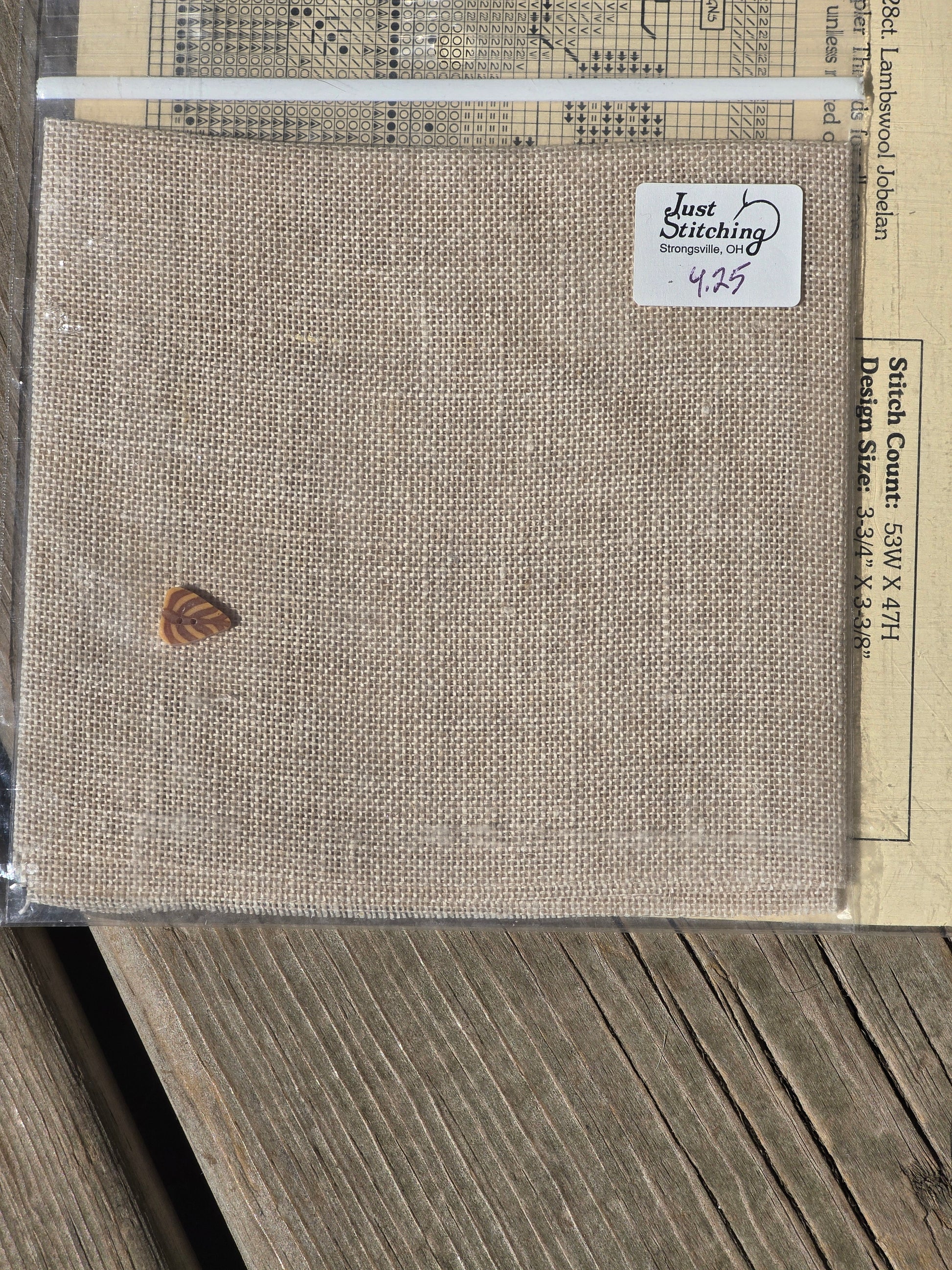 Fall Basket cross stitch kit. Brittercup Designs 2007. Stitch count: 53w x 47h. Kit includes chart, cloth and button. Pencil writing on cover. Estate find. Good condition.