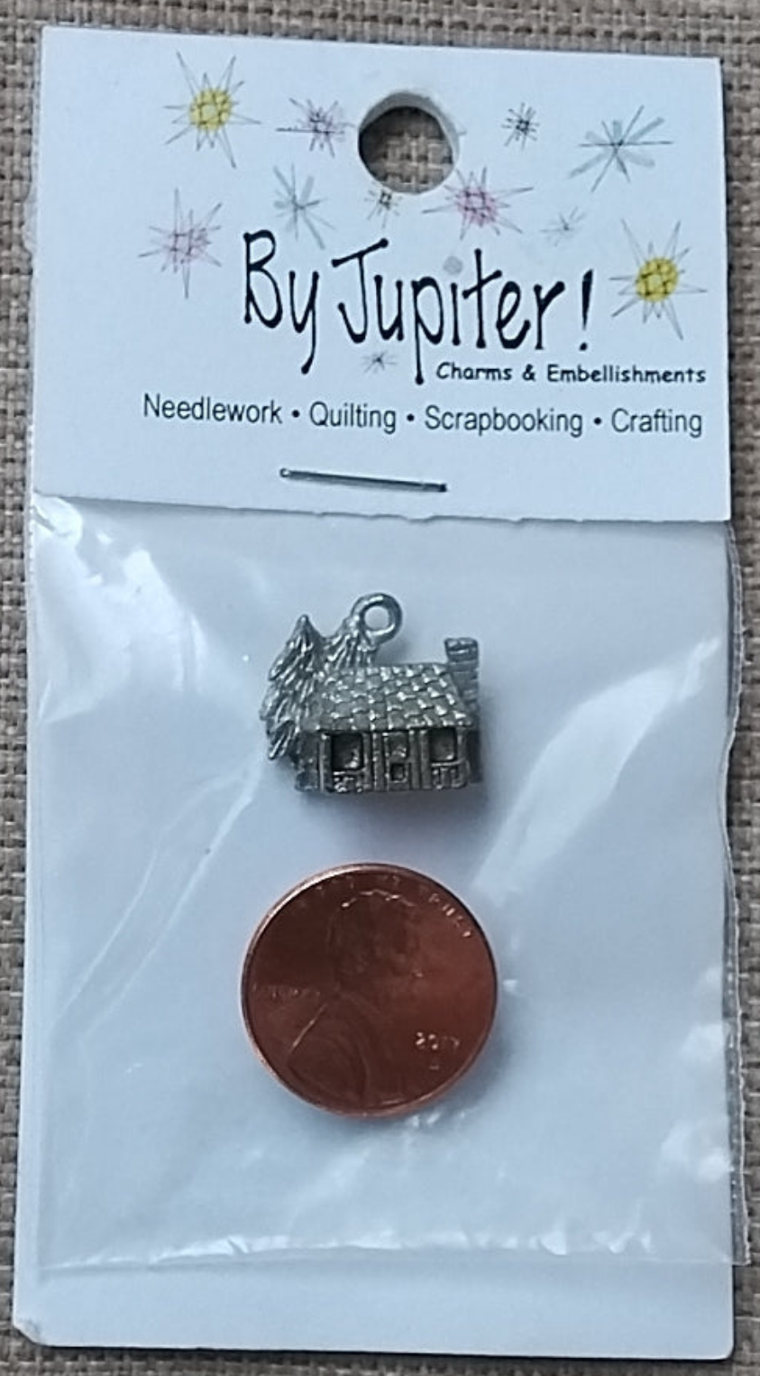 Antique silver, pewter-cast house with tree charm. By Jupiter. American made. New stock. Great for use in needlework, quilting, scrapbooking and crafting.