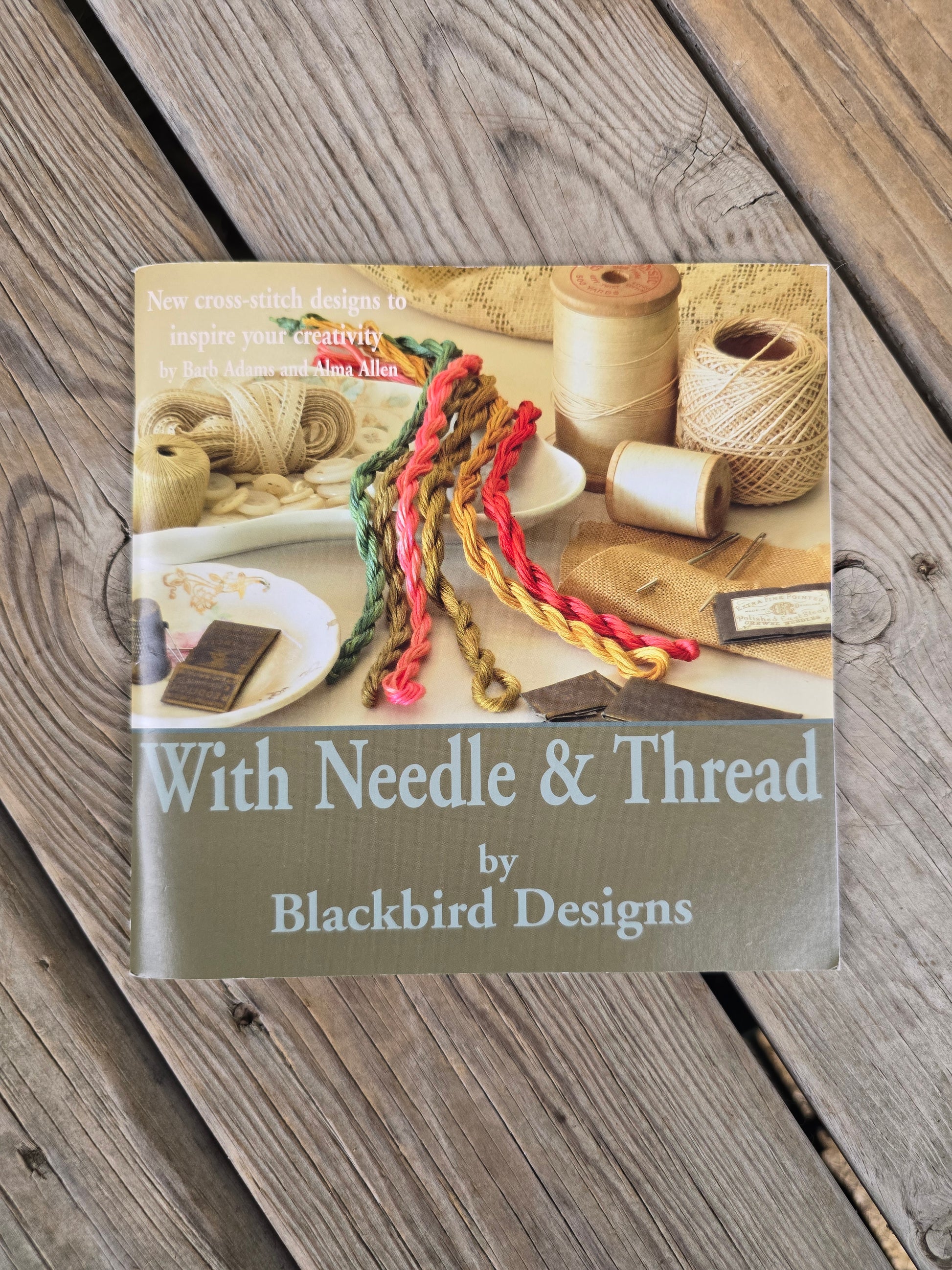 With Thy Needle & Thread cross stitch pattern book. Blackbird Designs 2007. OOP. Estate find. Like new. Appears unused.
