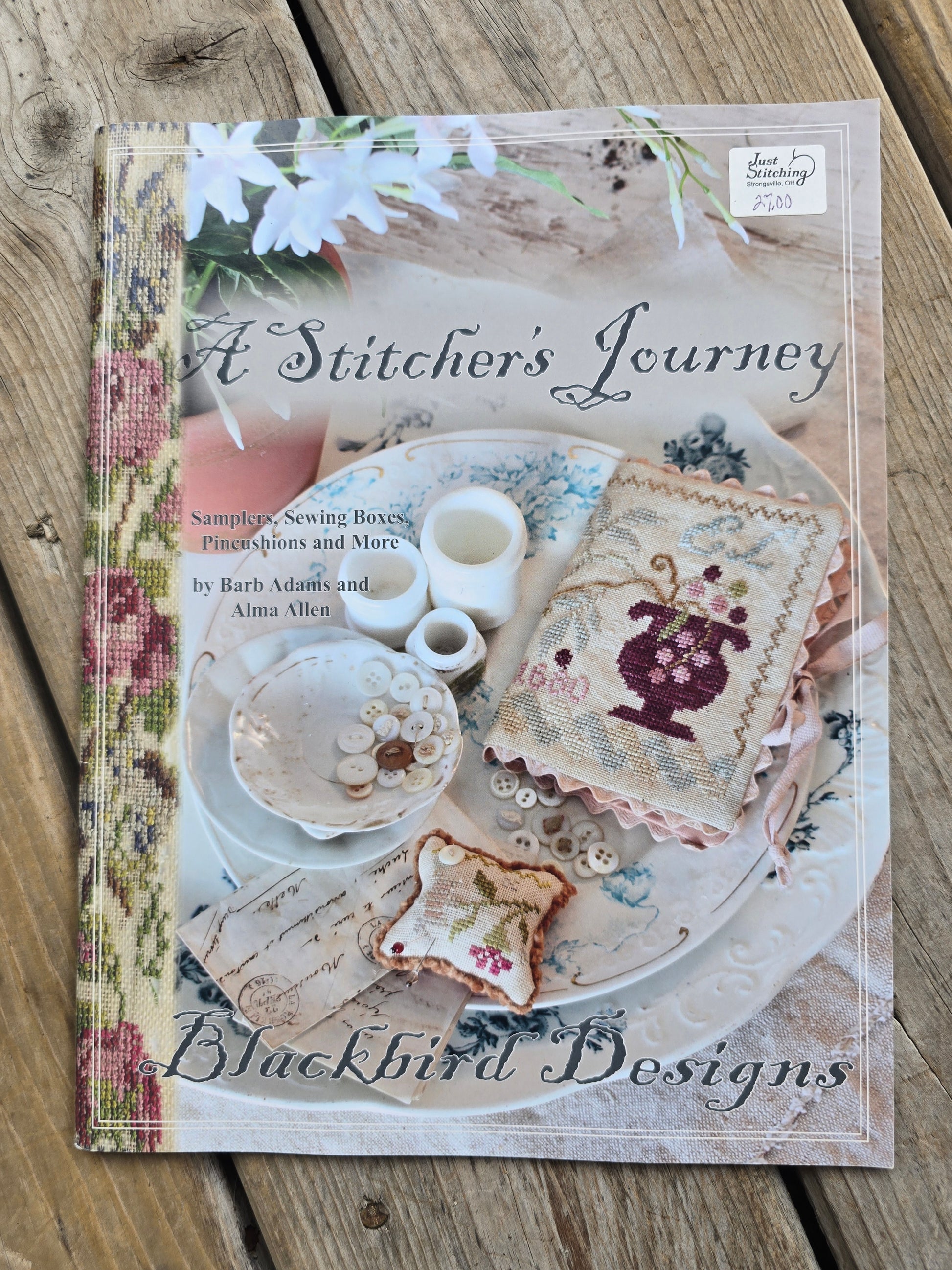 A Stitcher's Journey cross stitch pattern book. Blackbird Designs 2011. OOP. Estate find. Like new. Appears unused.