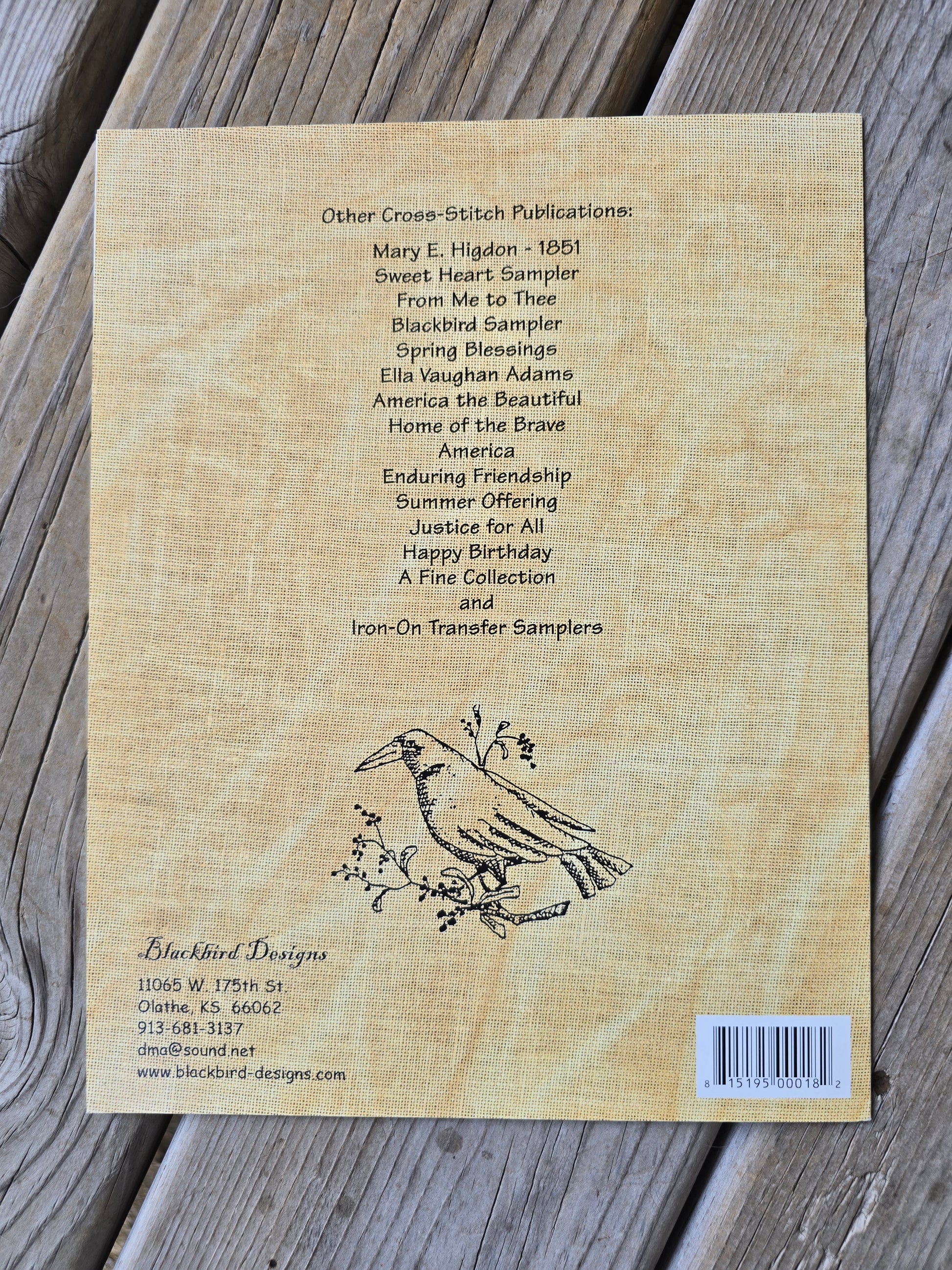 Happy Birthday cross stitch pattern. Blackbird Designs 2002. OOP. Sampler size: 104w x 214h. Estate find. Like new. Appears unused.