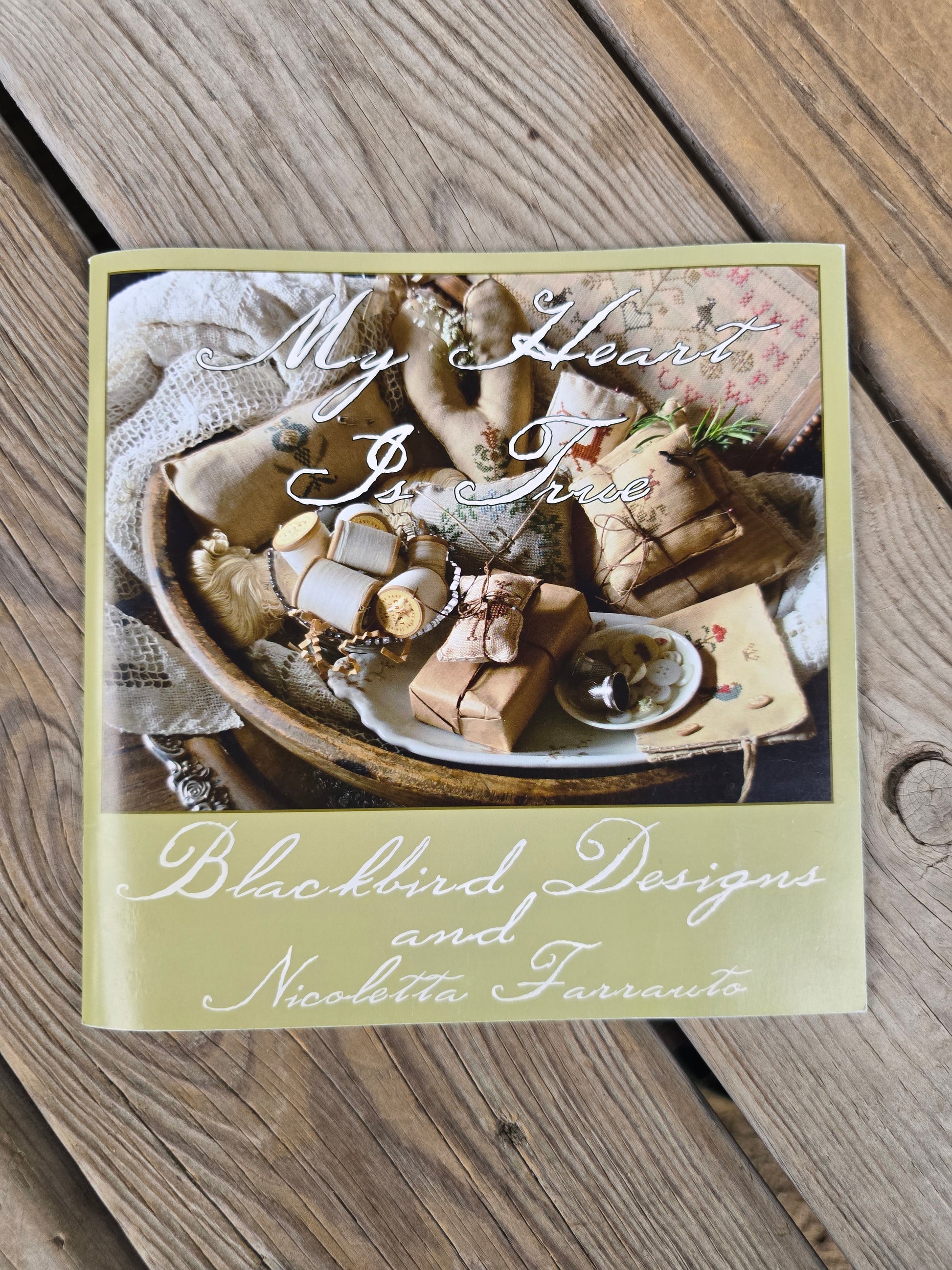 My Heart Is True cross stitch pattern book. Blackbird Designs 2009. Estate find. Like new. Appears unused.