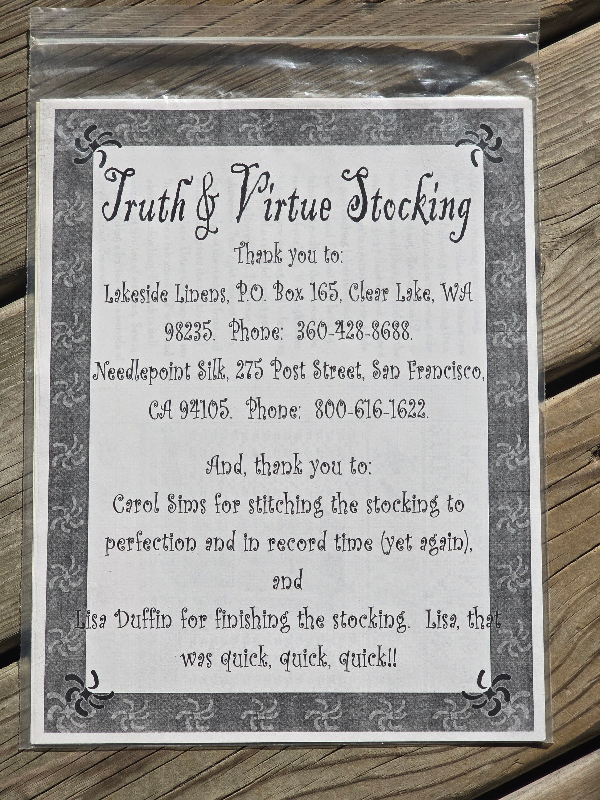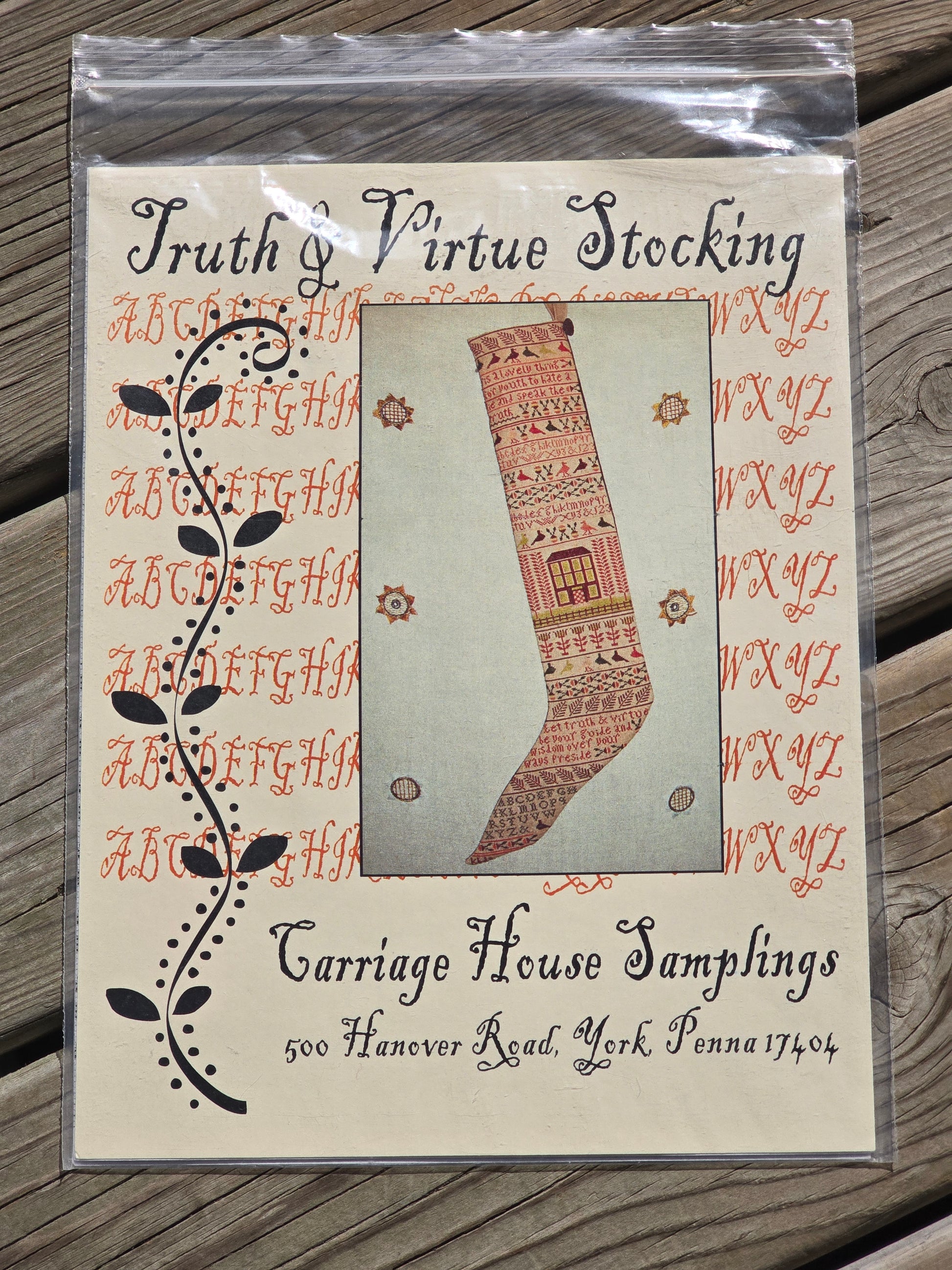 Truth.& Virtue Stocking cross stitch pattern. Carriage House Samplings 2005. Stitch count: 172w x 447h. Estate find. Good condition. In original package.