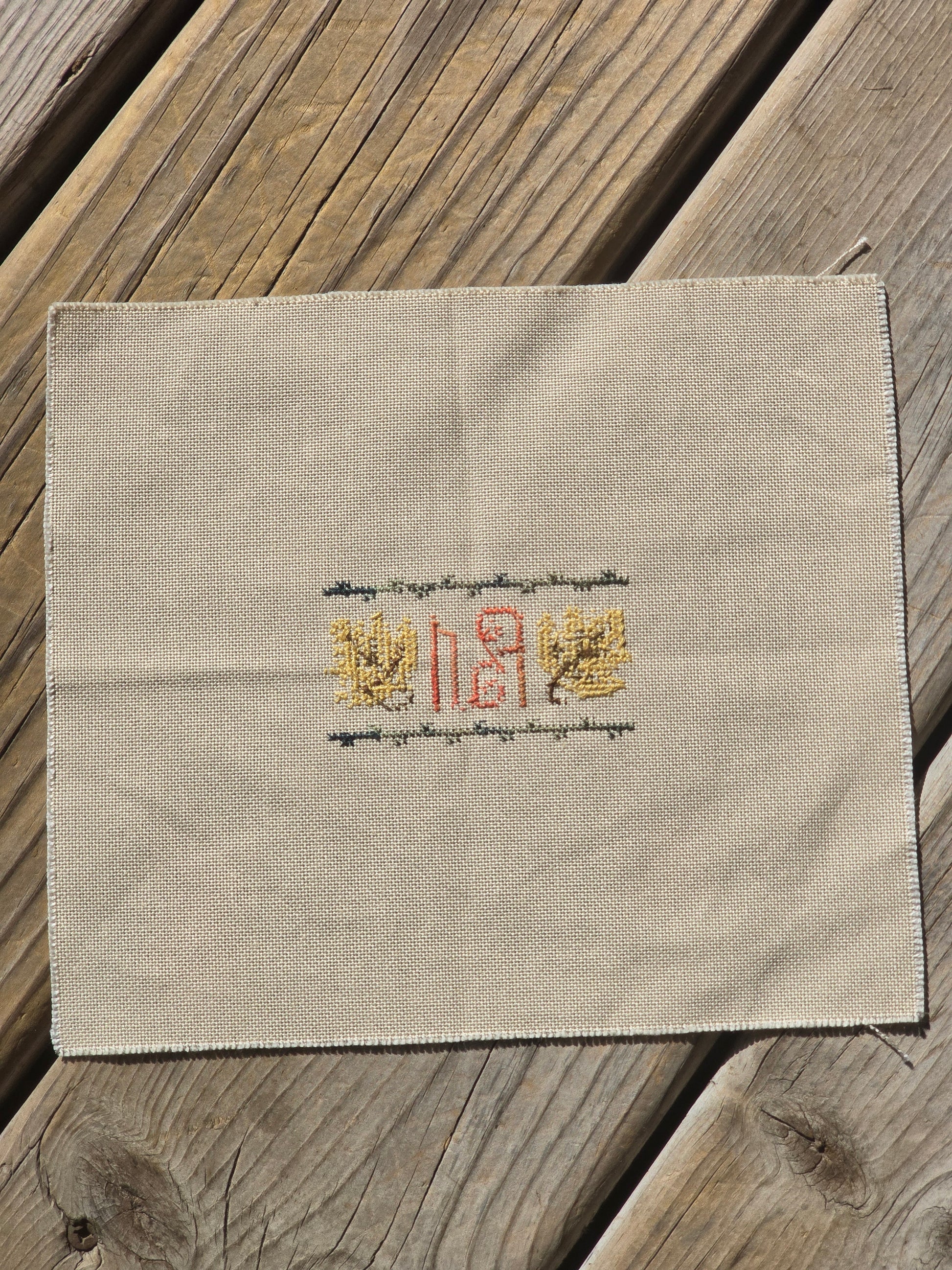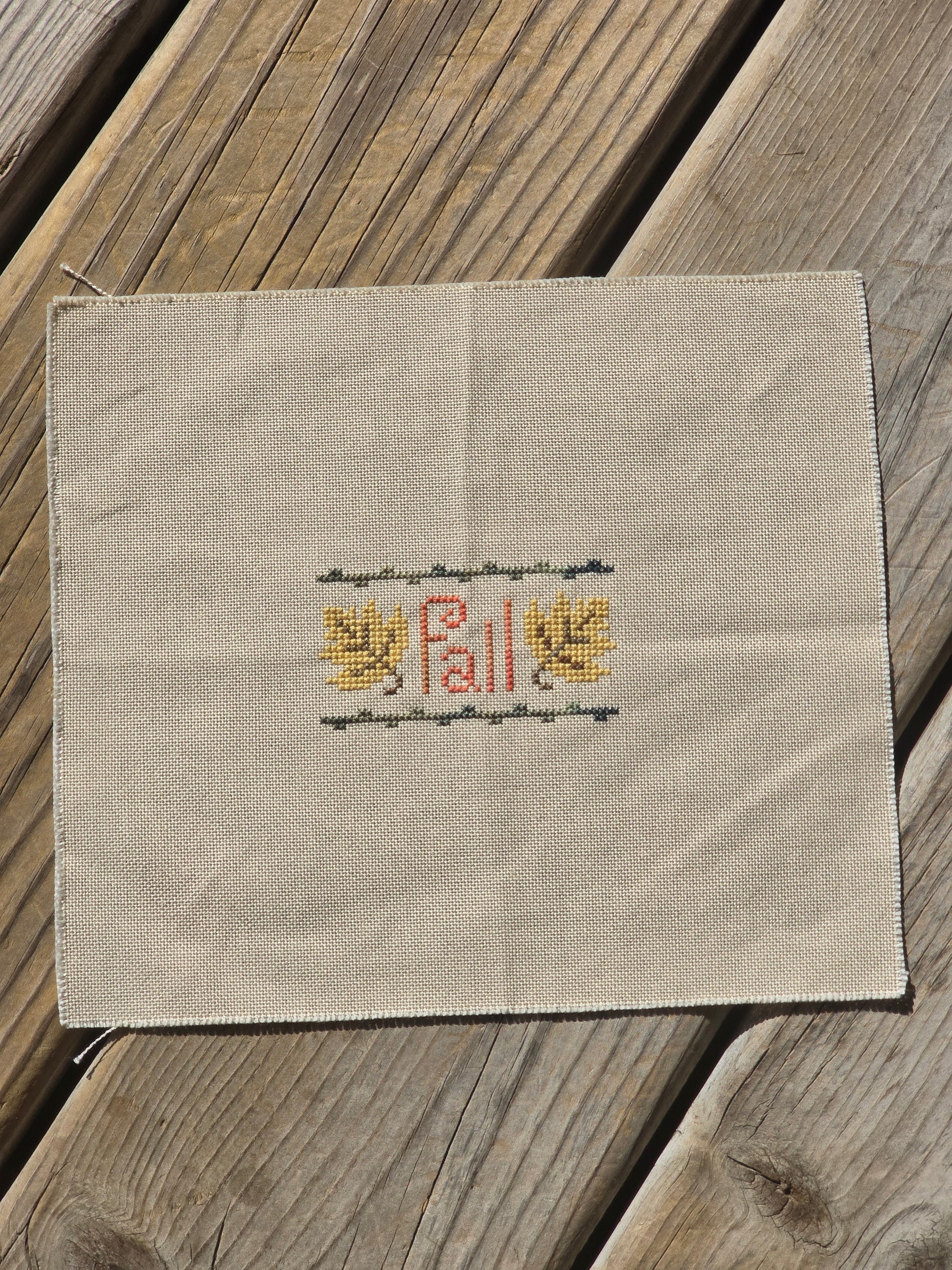 Fall Leaf completed cross stitch. Cloth size: 9" x 8". Stitched area: 3.25" x 1.75". Estate find. Good condition. Colors may vary from photo, based on lighting. Finish as desired.