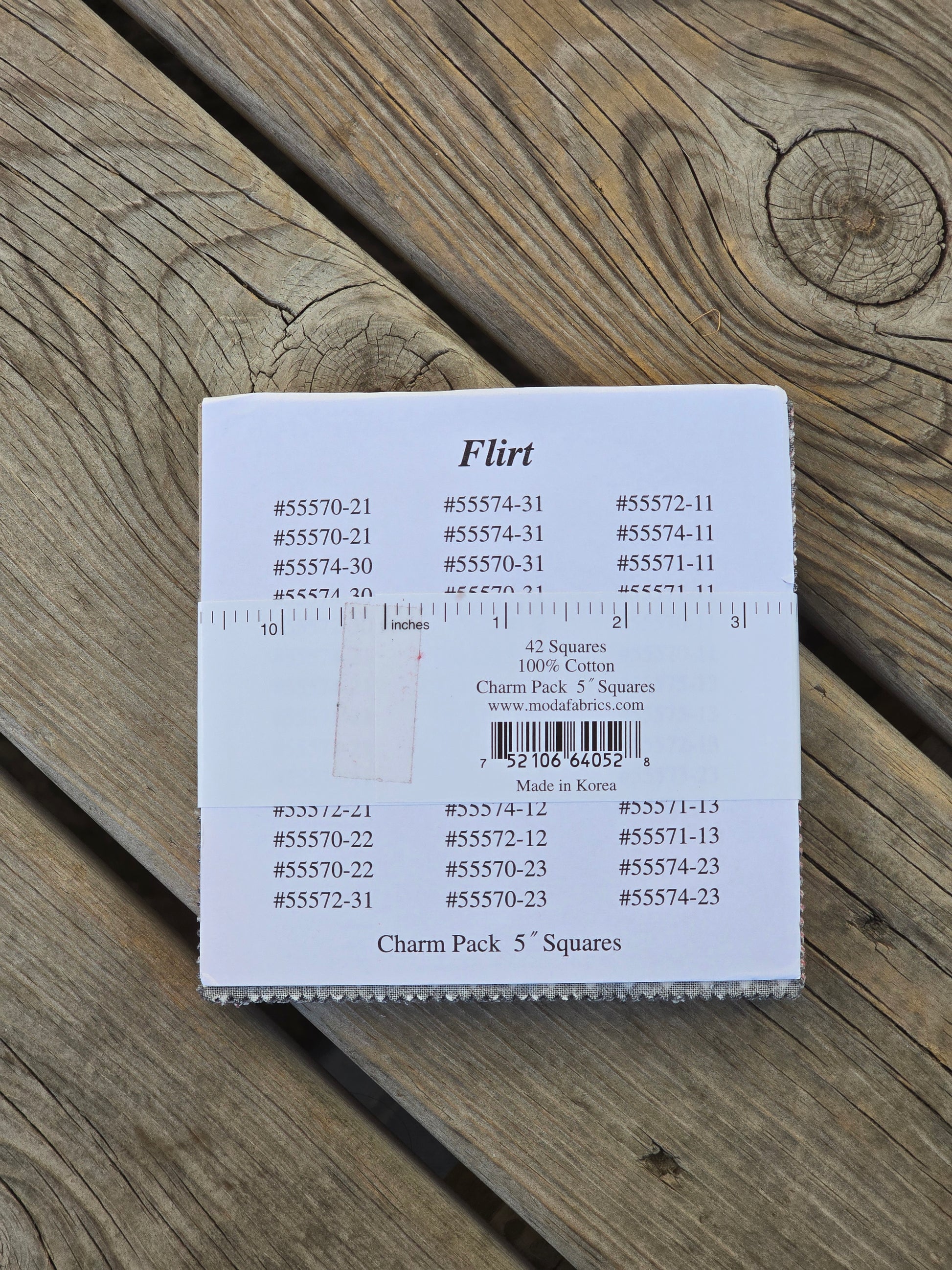 Flirt charm pack. Moda. Sweetwater. 42 5" x 5" squares. Estate find. Like new.