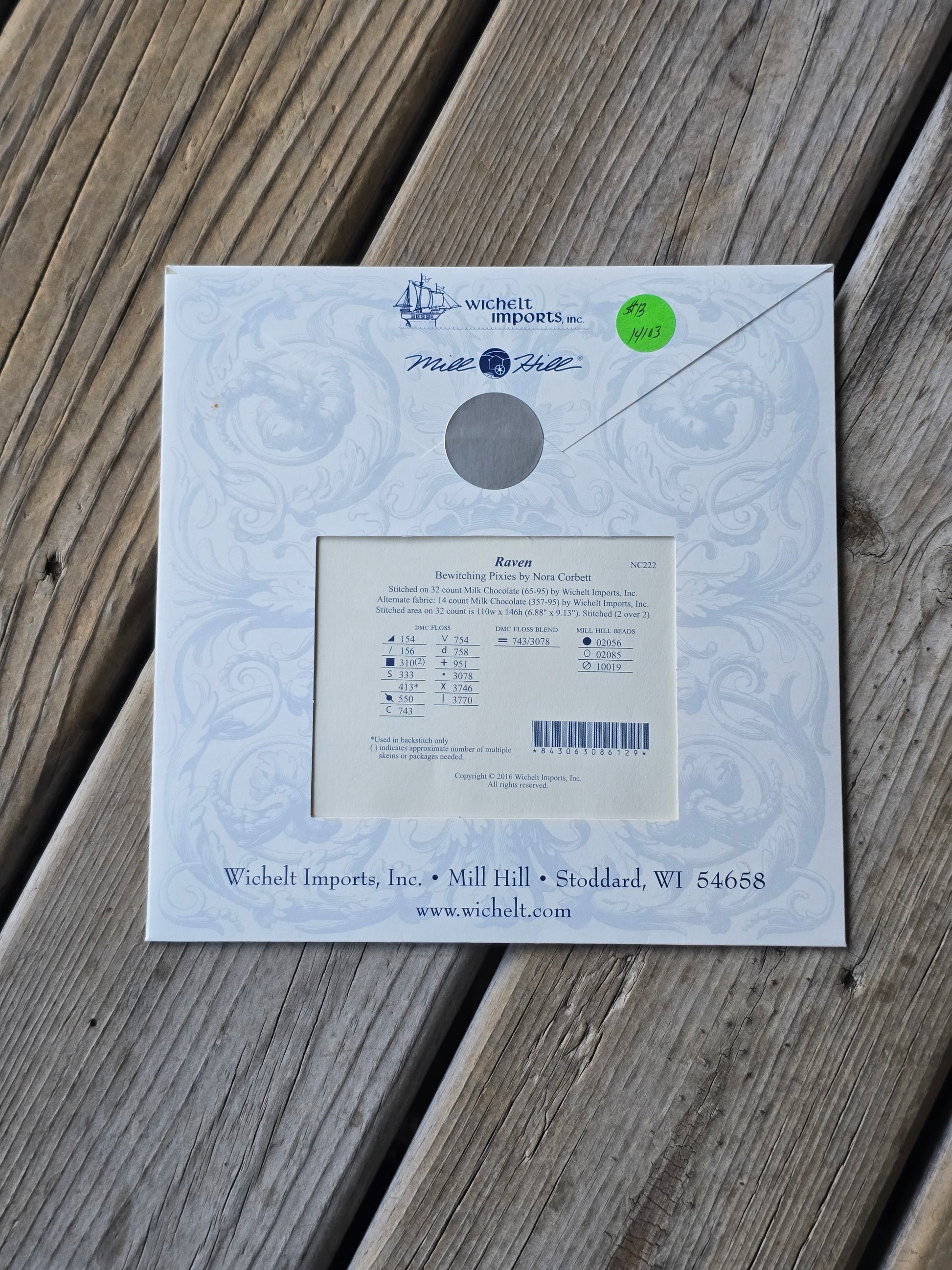 Raven cross stitch pattern. Mirabilia Designs 2016. Stitch count: 110 x 146. Estate find. Good condition. Unopened pattern. Small mark on upper left side of back cover.