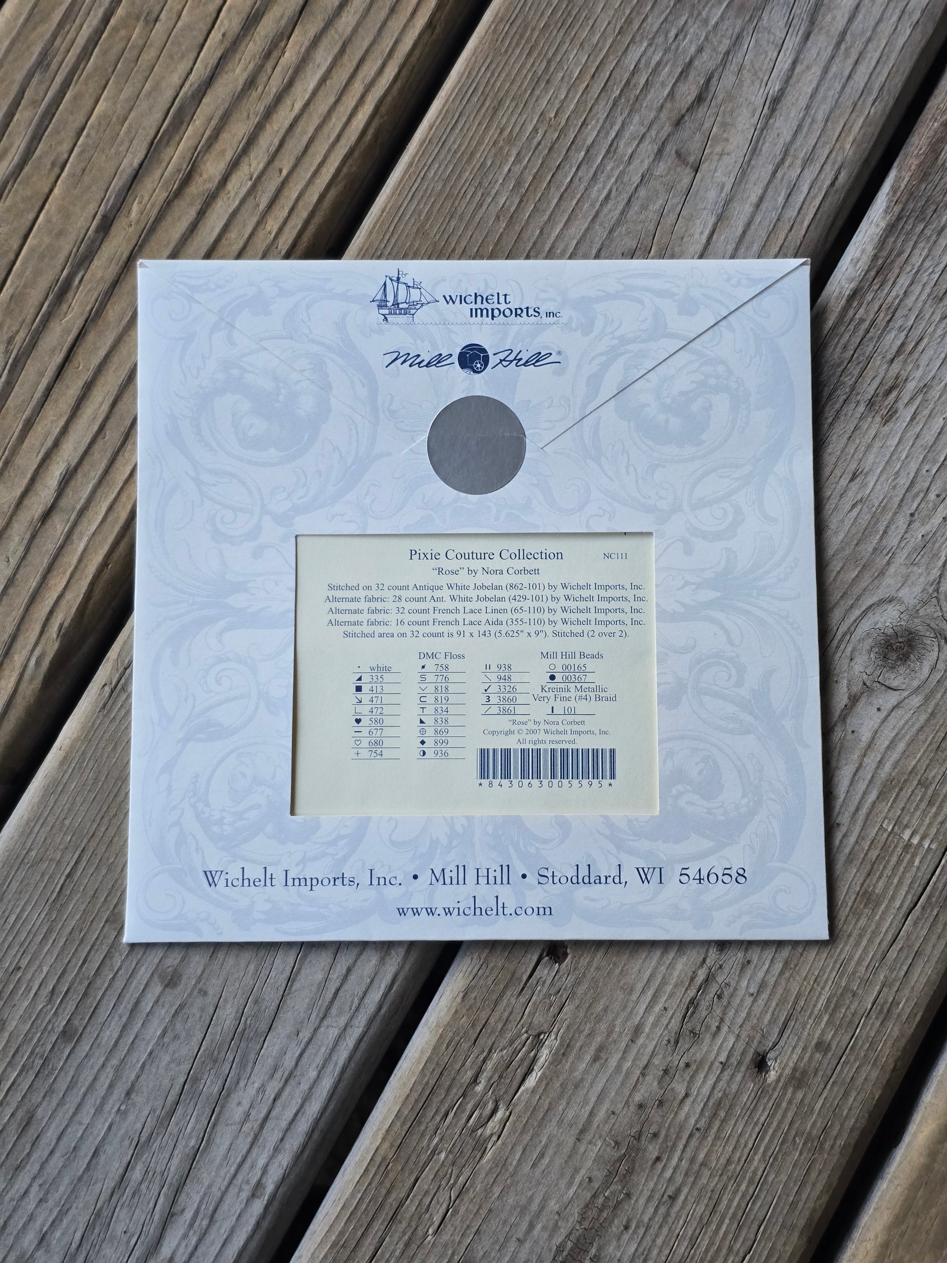 Pixie Couture Collection “Rose” cross stitch pattern. Mirabilia Designs 2007. Stitch count: 91 x 143. Estate find. Like new. Unopened pattern.