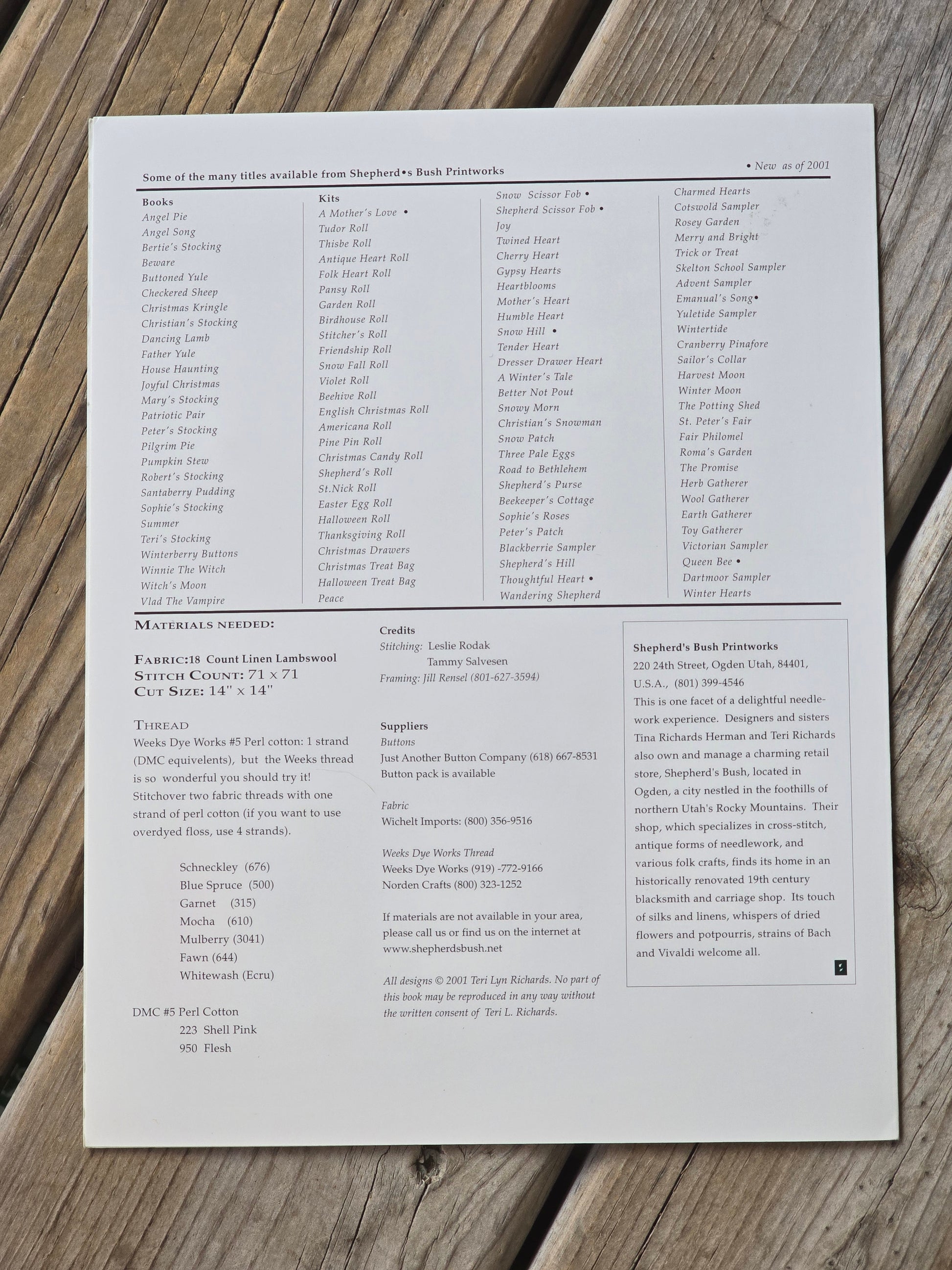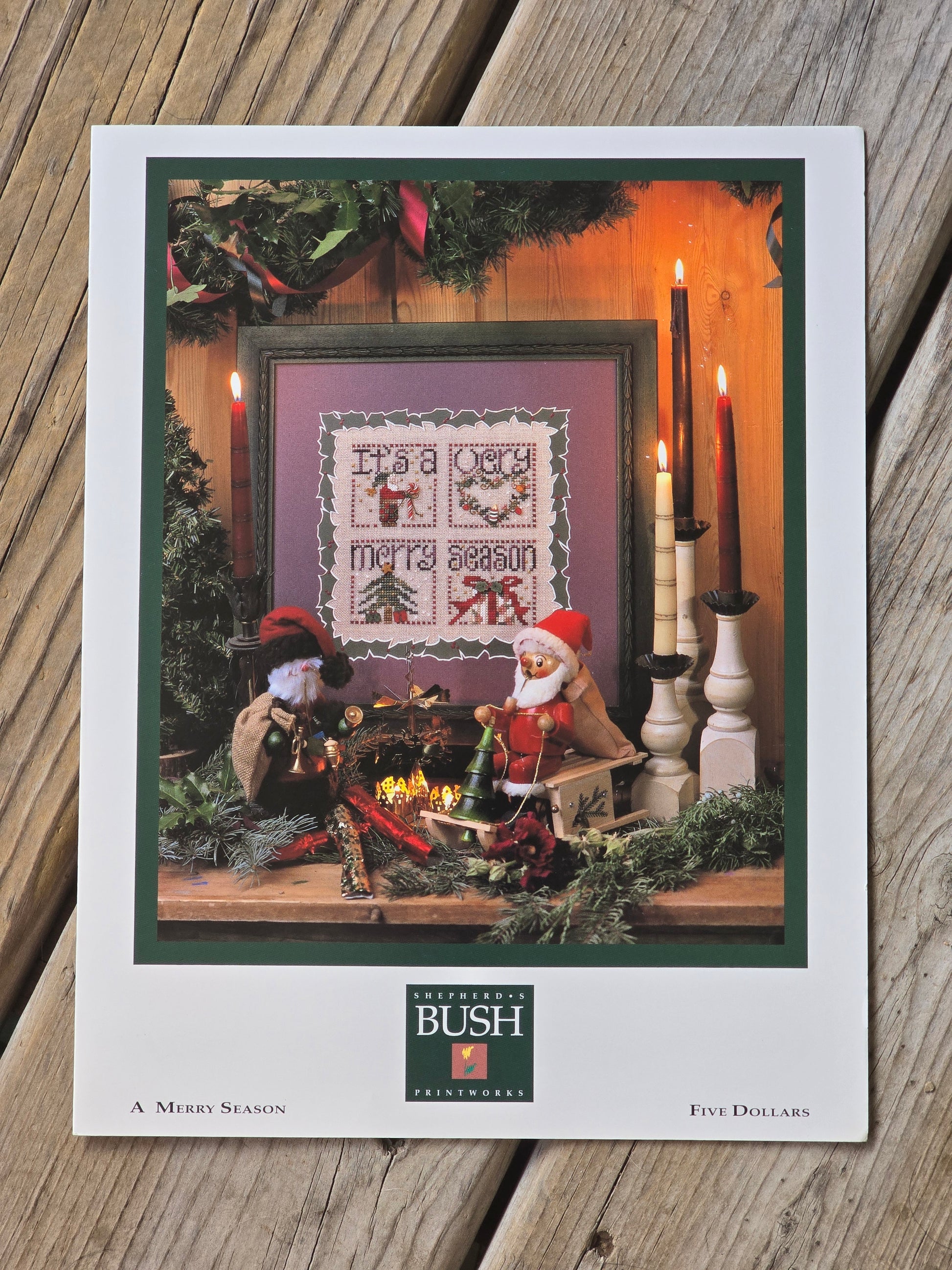 A Merry Seaon cross stitch pattern. Shepherd's Bush 2001. Stitch count: 71x71. Estate find. Good condition.