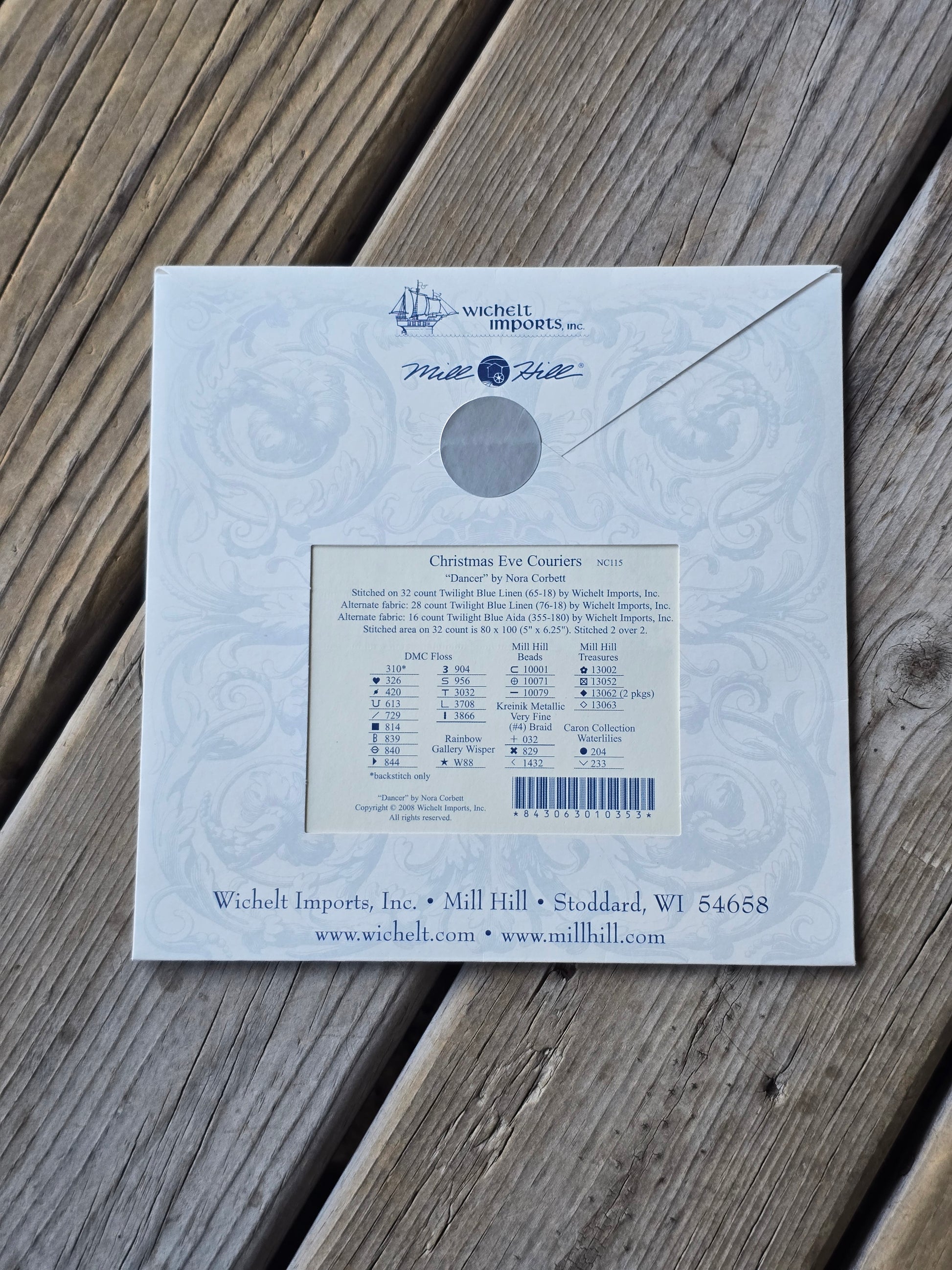 Christmas Eve Couriers "Dancer" cross stitch pattern. Mirabilia Designs 2008. Stitch count: 80 x 100. Estate find. Like new. Unopened pattern.