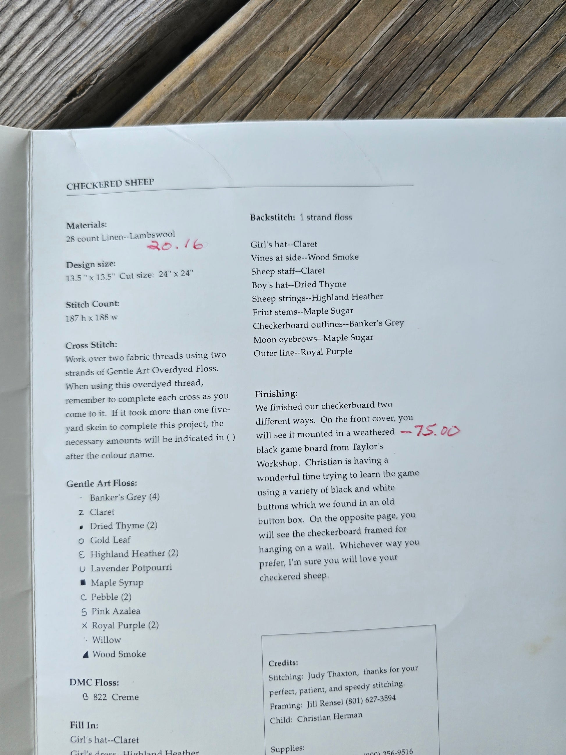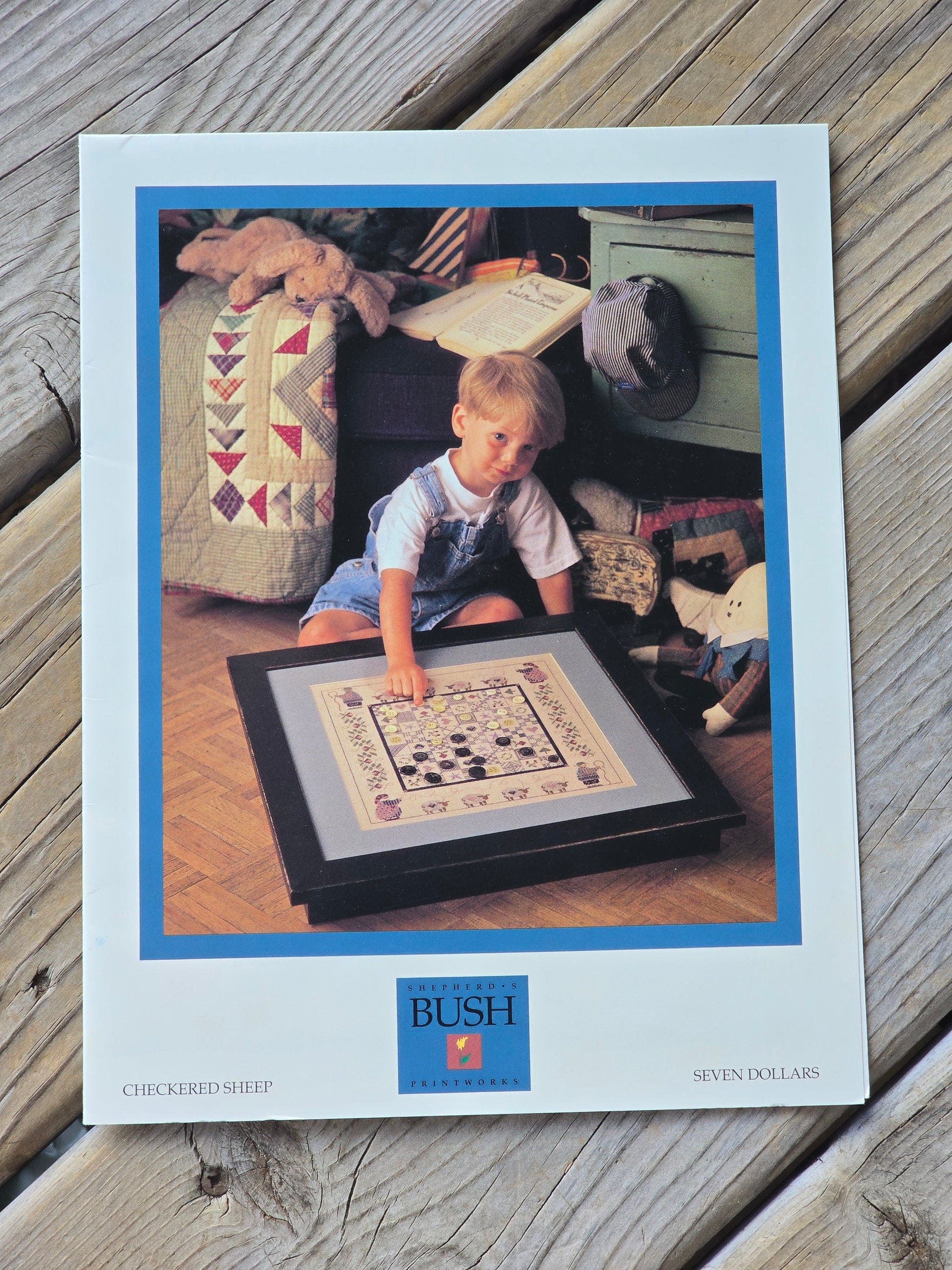 Checkered Sheep cross stitch pattern. Shepherd's Bush 1997. Stitch count: 188w x 187h. Estate find. Good condition. Prices written inside, see photo.