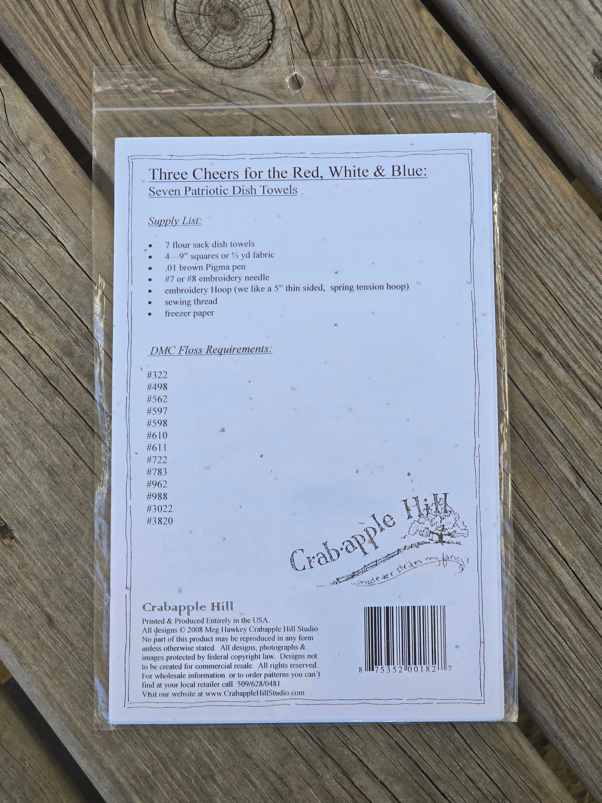 Crab-apple Hill - Three Cheers For the Red, White & Blue - Patriotic Dish Towels - Embroidery Pattern