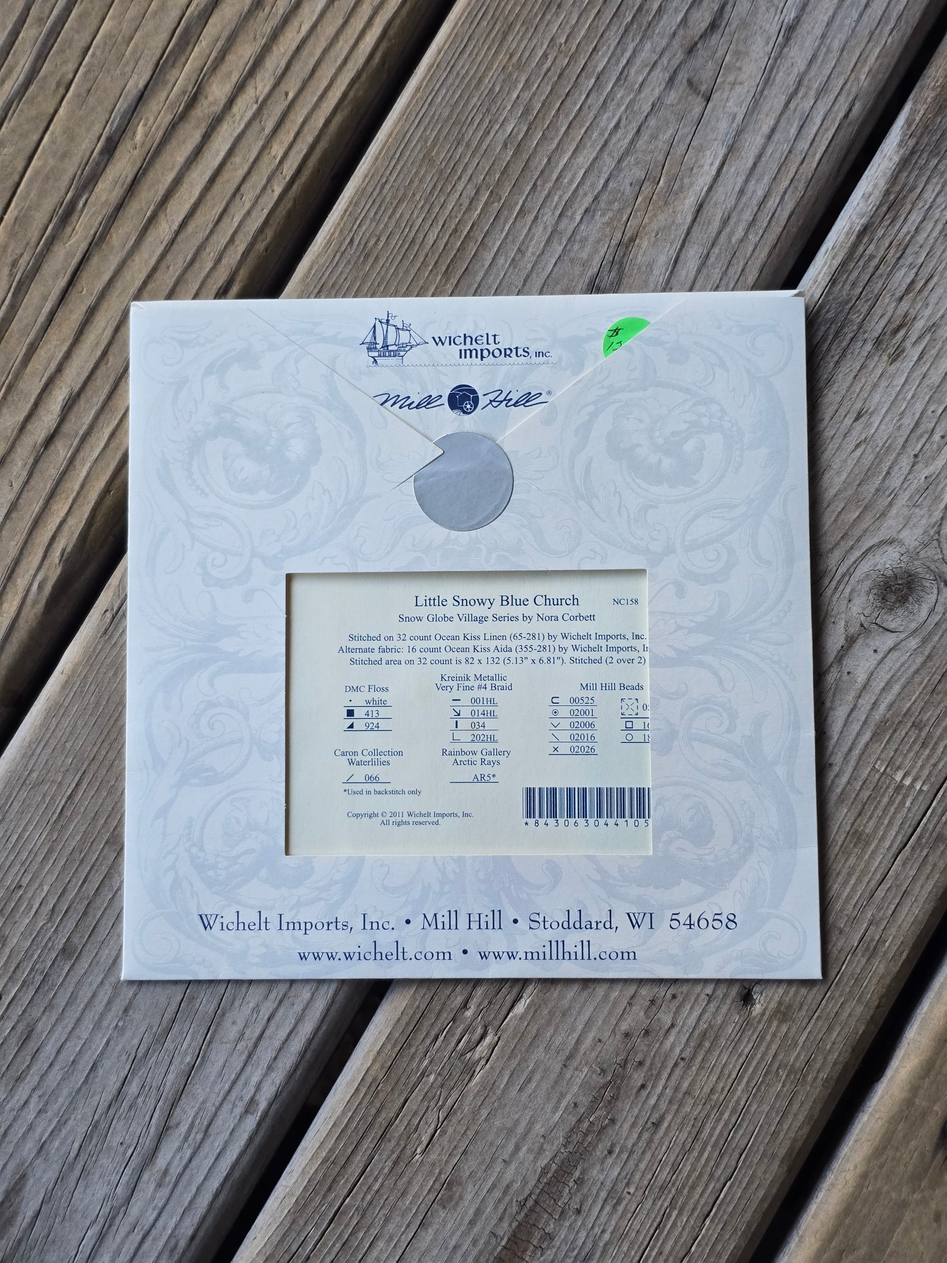 Little Smowy Blue Church cross stitch pattern. Mirabilia Designs 2011. Stitch count: 82 x 132. Estate find. Good condition. Pattern has been opened.