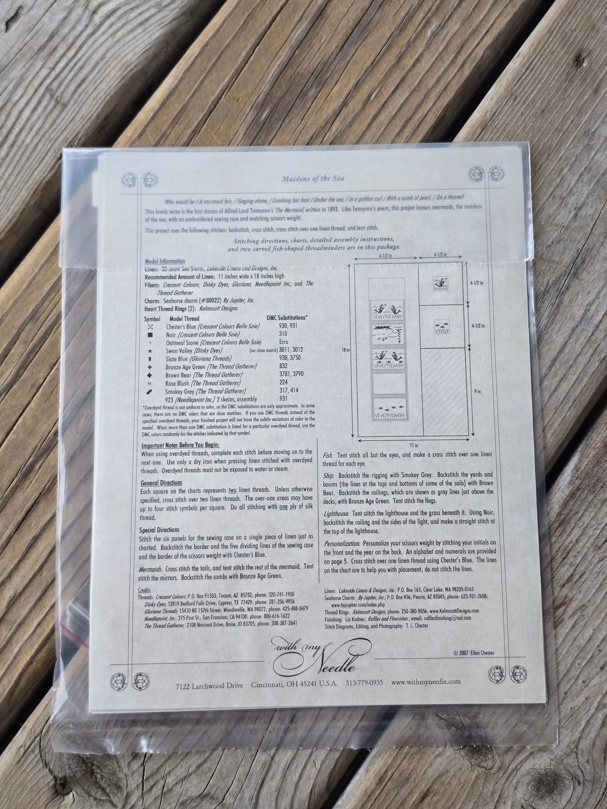 Maidens of the Sea cross stitch pattern with fish thread winders. With My Needle 2007. Estate find. Like new in original package.