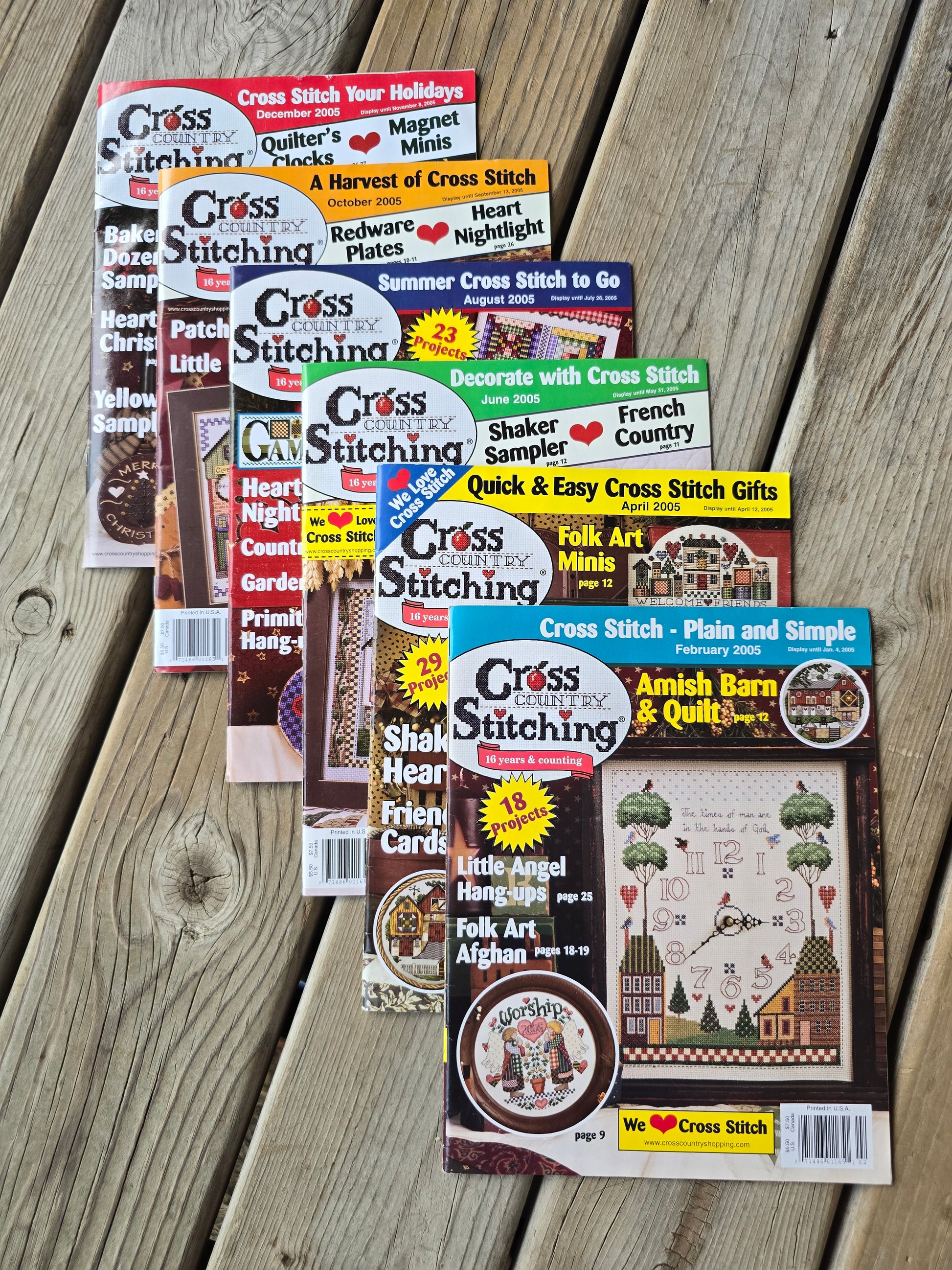 Cross Country Stitching Magazine bundle - 2005. Bi-Monthly: February, April, June, August, October, and December 2005 issues. Estate find. Like new. No tears, writing on pages or missing pages. Some issues may have bent areas. Some issues may have mailing name and address blacked out.