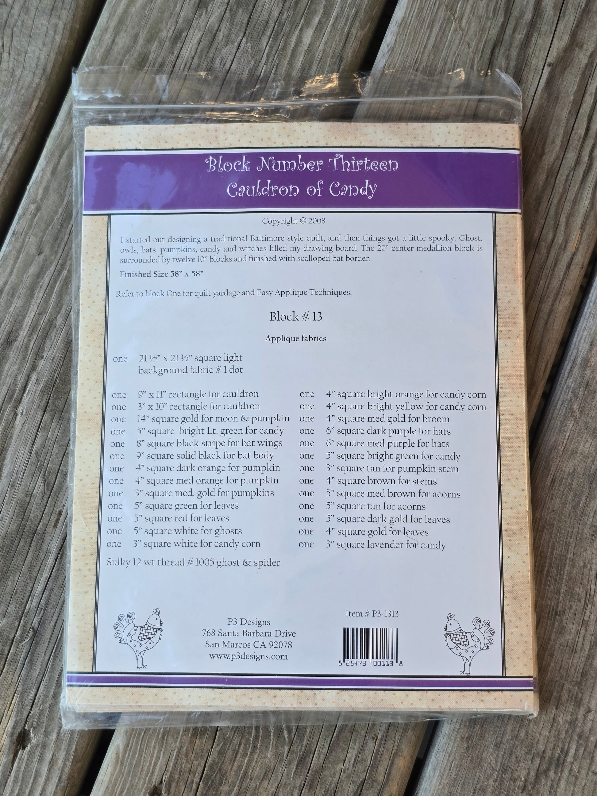 Baltimore Halloween, 13 month, Block of the Month, applique quilt pattern. P3 Designs 2008. Finished size 58" x 58". From a retired quilt shop. New in original package.