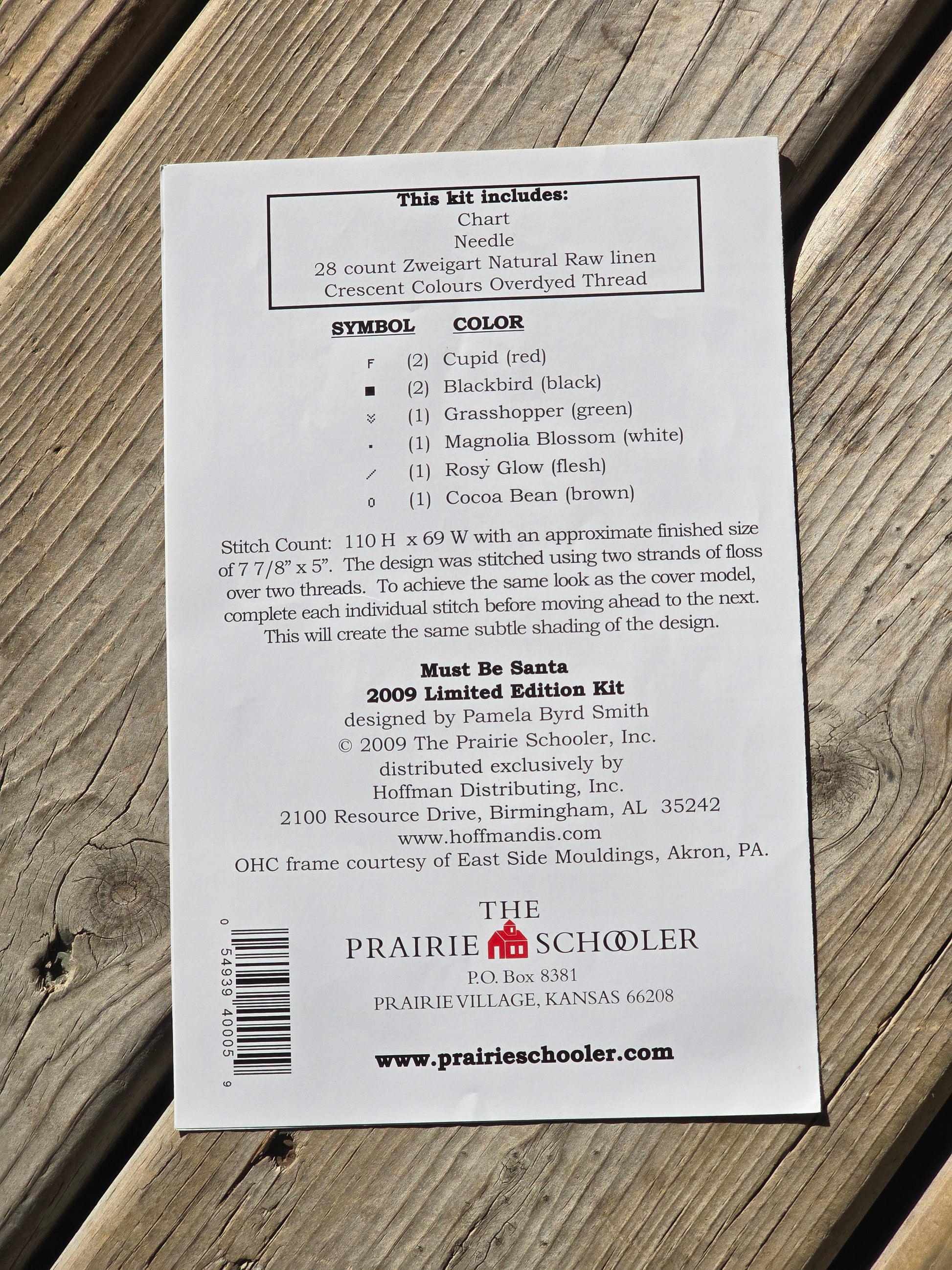 Must Be Santa, 2009 Limited Edition, cross stitch pattern. The Prairie Schooler 2009. Stitch count: 110h x 69w. Estate find. Good condition.