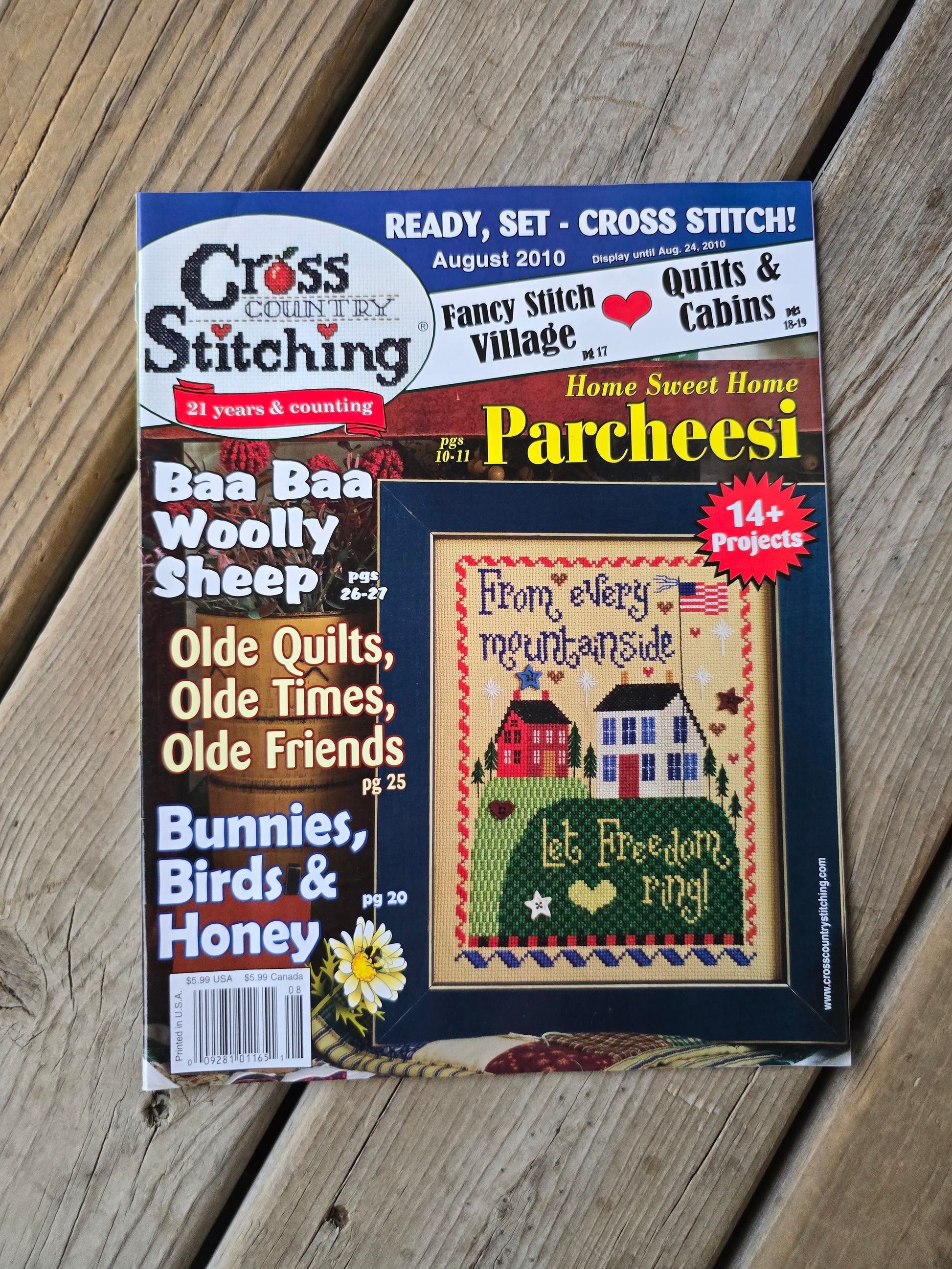 Cross Country Stitching Magazine bundle - 2010. Bi-Monthly: February, April, June, August, October, and December 2010 issues. Estate find. No writing on pages or missing pages. Some issues may have bent areas. Some issues may have mailing name and address blacked out. December issue, tear in upper left corner of front cover.