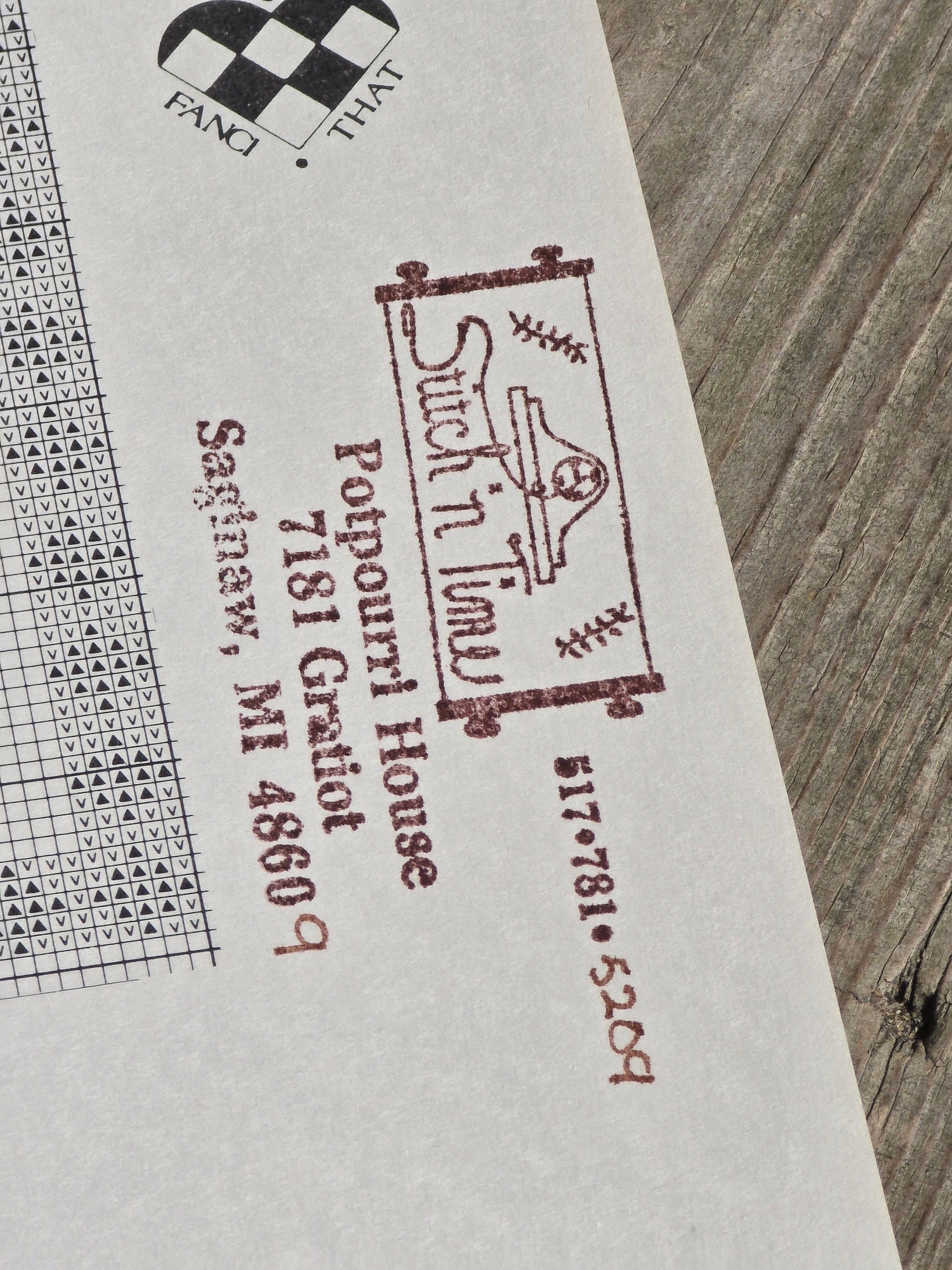 Folk Art Fancies cross stitch pattern. Fanci That 1992. Approximate design area: 56 x 56. Estate find. Good condition. Store stamp on inside cover.