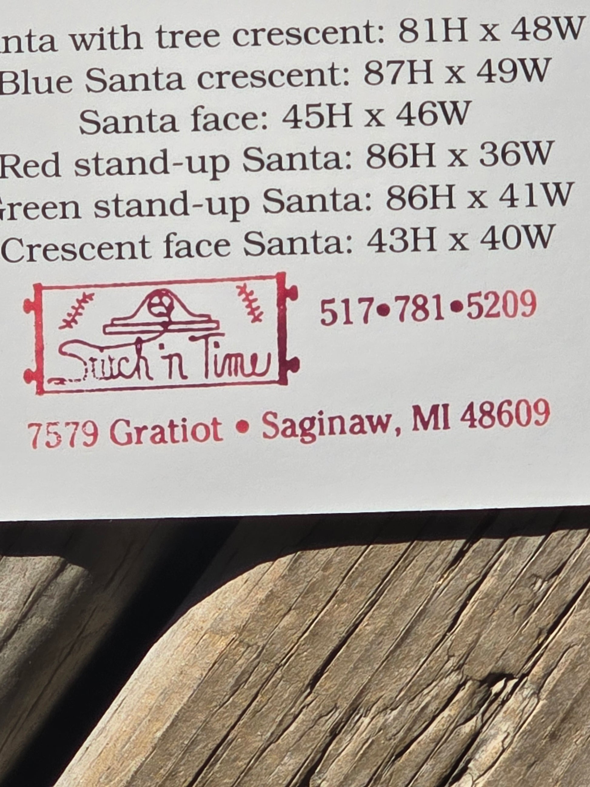 Santa Moon cross stitch pattern. The Prairie Schooler 1995. Stitch count: SantA with tree 81h x 48w, Blue santa 87h x 49w, Santa face 45h x 46w, Red 86h x 36w, Green 86h x 41w, Crescent 43h x 40w. Estate find. Good condition. May have wear on edges and corners. Store stamp on inside.