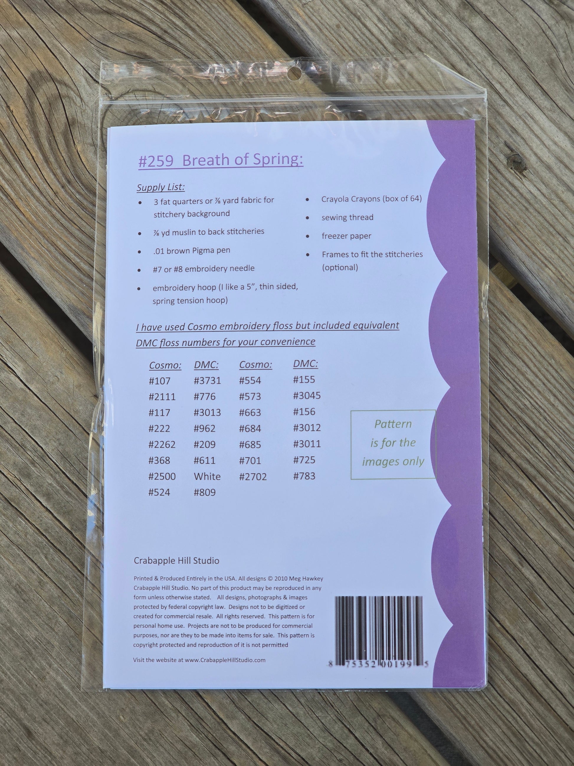 Breath of Spring embroidery pattern. Crab-apple Hill 2010. From a retired quilt shop. New in original package.
