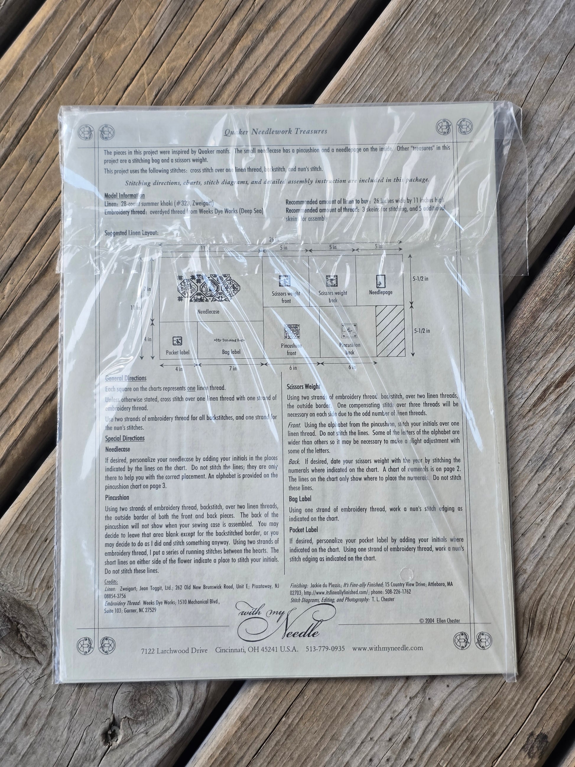Quaker Needlework Treasures cross stitch pattern. With My Needle 2004. Estate find. Like new in original package.