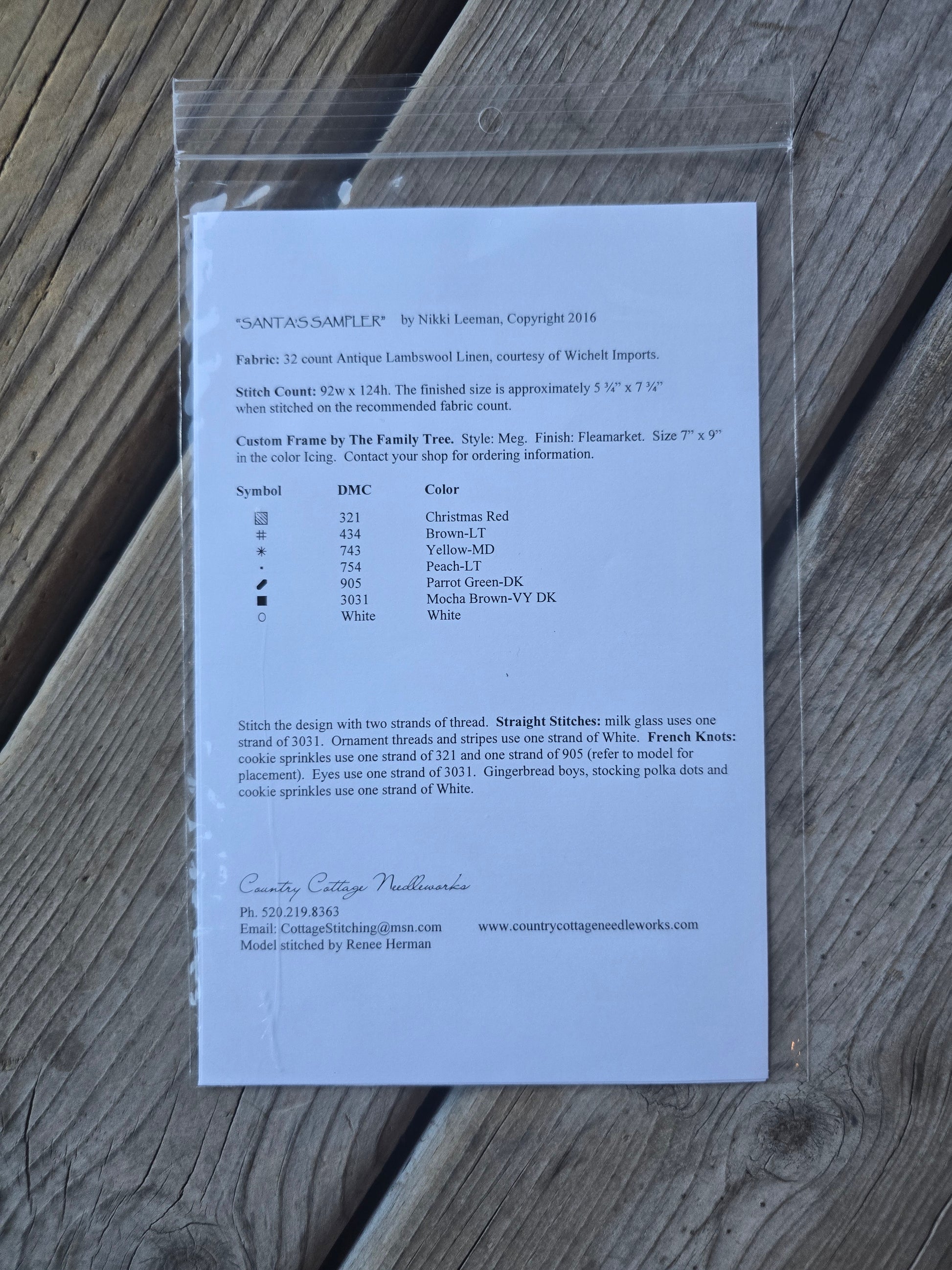 Santa's Sampler cross stitch pattern. Country Cottage Needleworks 2016. Stitch count: 92w x 124h. Estate find. Like new in original package.