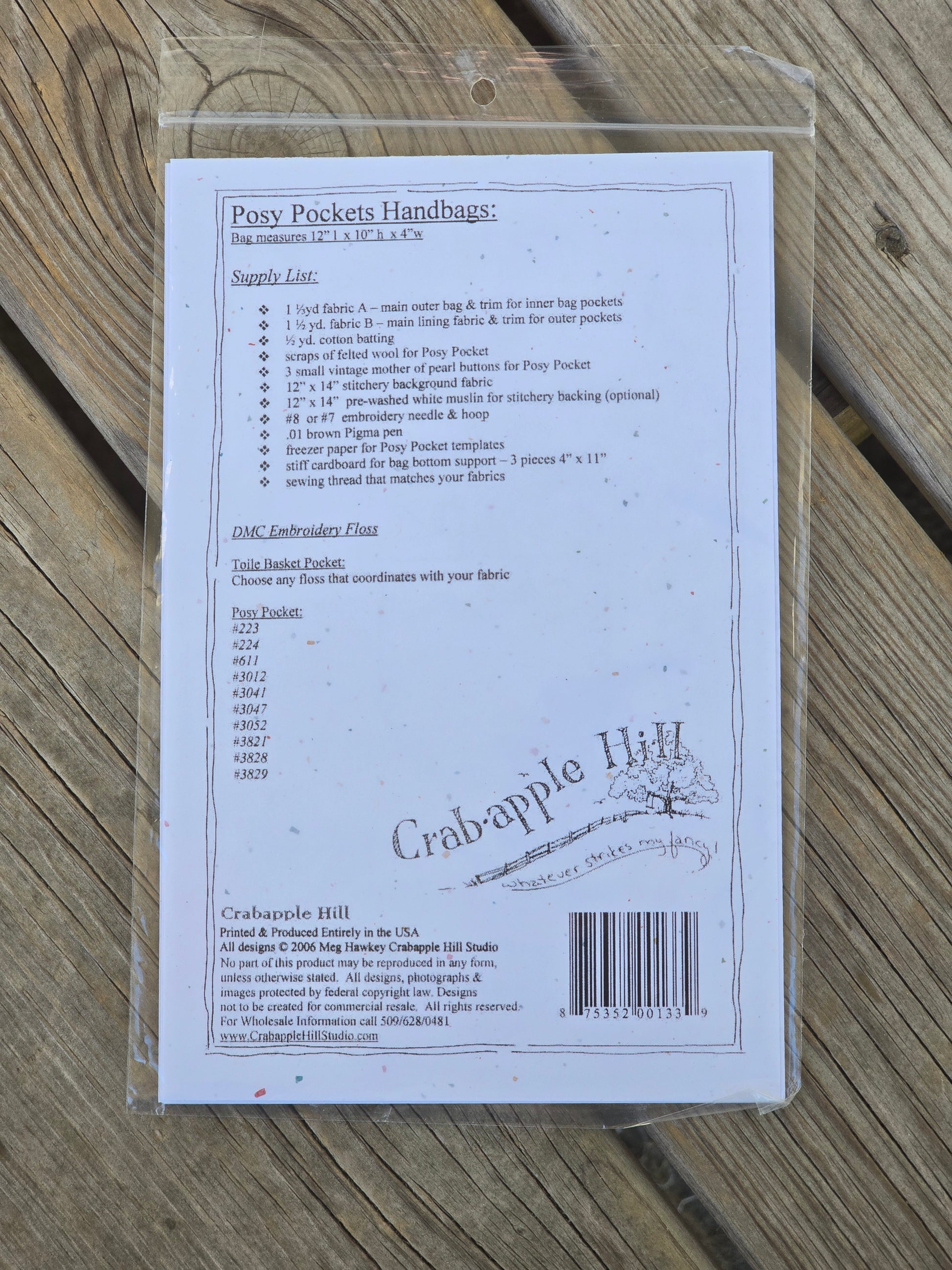 Crab-apple Hill - #1006 - Posey Pocket Handbags - Embroidery Pattern