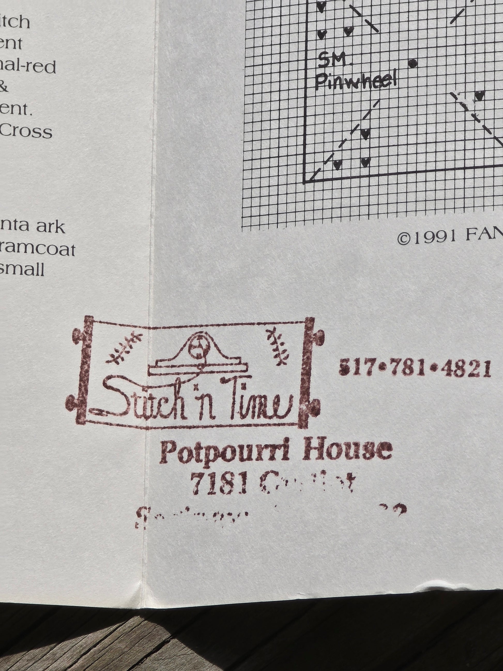 Red, White, Blue & Santa Too cross stitch pattern. Fanci That 1991. Estate find. Good condition. Store stamp inside pattern leaflet.