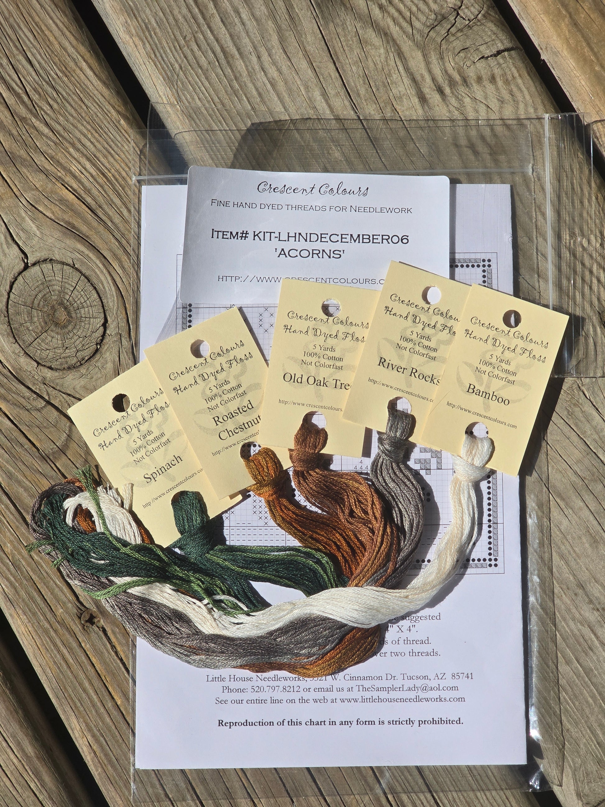 Acorns cross stitch pattern with floss. Little House Needleworks 2006. Stitch count: 57 x 57. Estate find. Like new in package.
