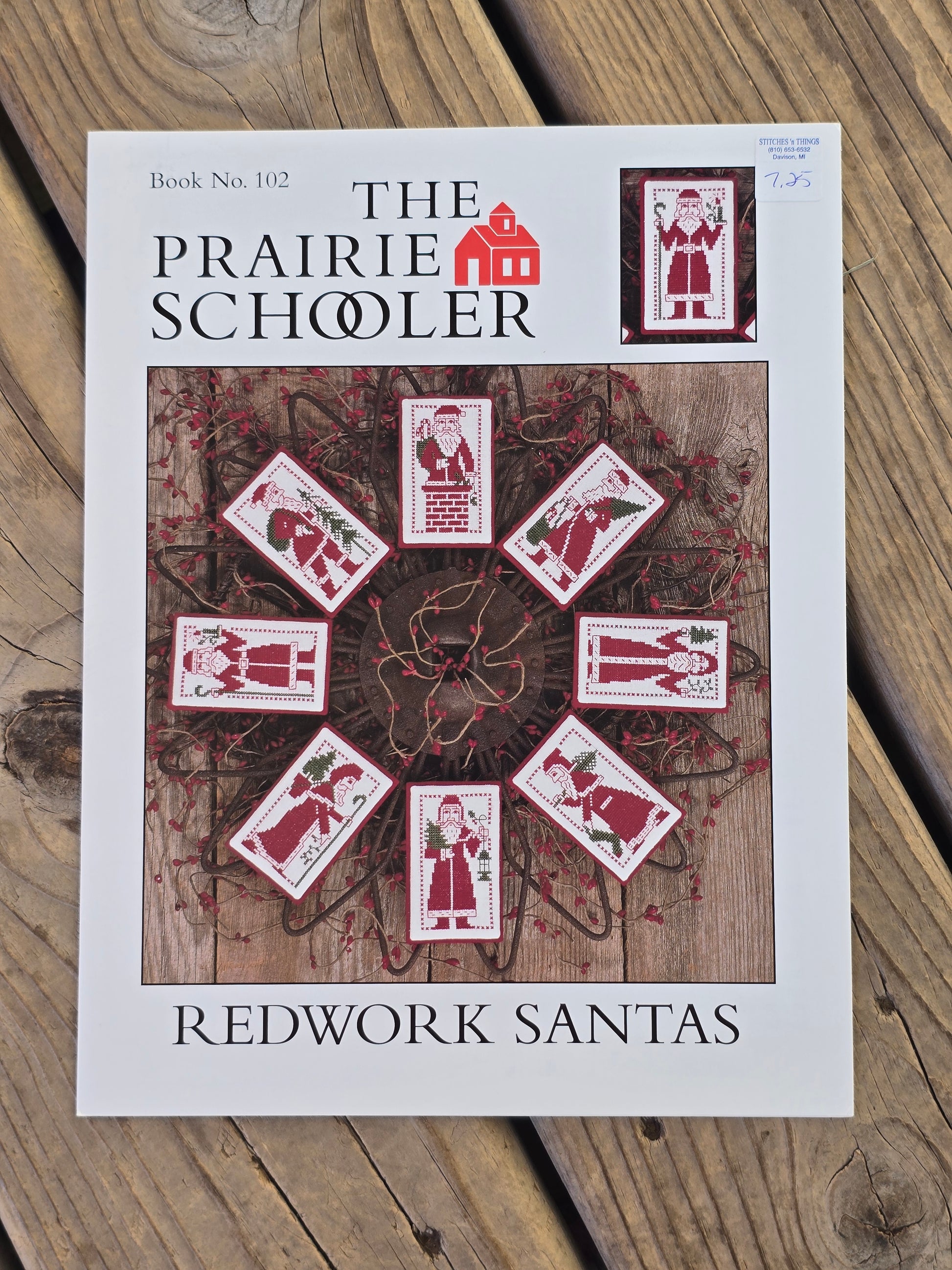 The Prairie Schooler - Redwork Santas - Book No. 102 - Cross Stitch Pattern
