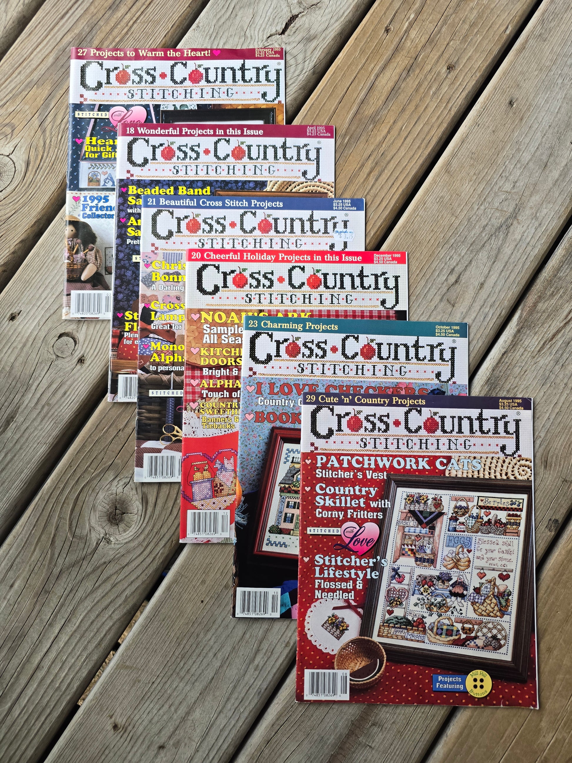 Cross Country Stitching Magazine bundle - 1995. Bi-Monthly: February, April, June, August, October, and December 1995 issues.