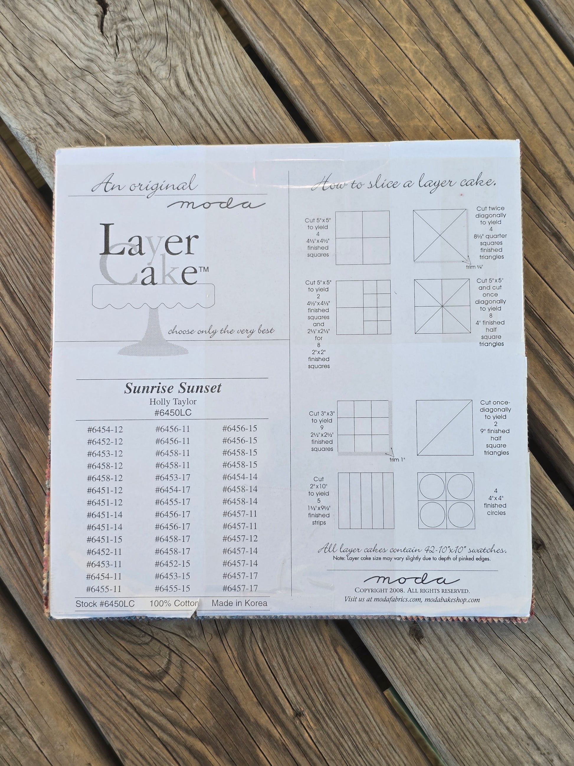 Sunrise Sunset by Holly Taylor layer cake. Moda 2008. 42 10" x 10" squares. Estate find. Like new.