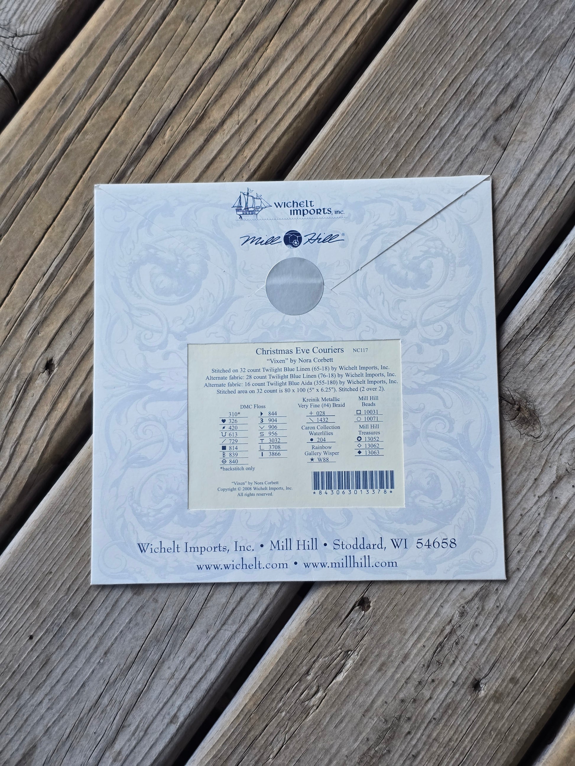 Christmas Eve Couriers "Vixen" cross stitch pattern. Mirabilia Designs 2008. Stitch count: 80 x 100. Estate find. Like new. Unopened pattern.