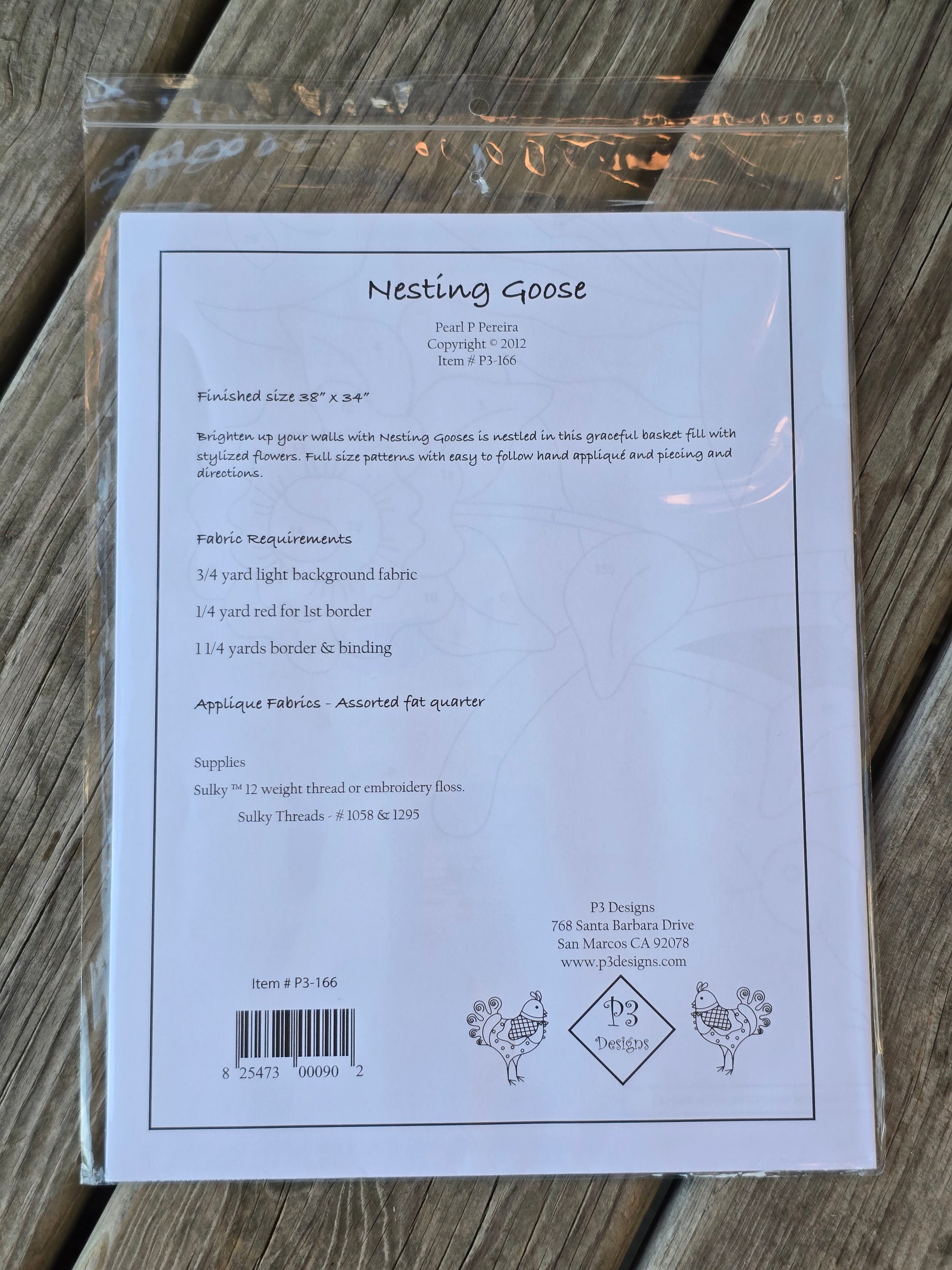 Nesting Goose applique quilt pattern. P3 Designs 2012. Finished size 38" x 34". From a retired quilt shop. New in original package.