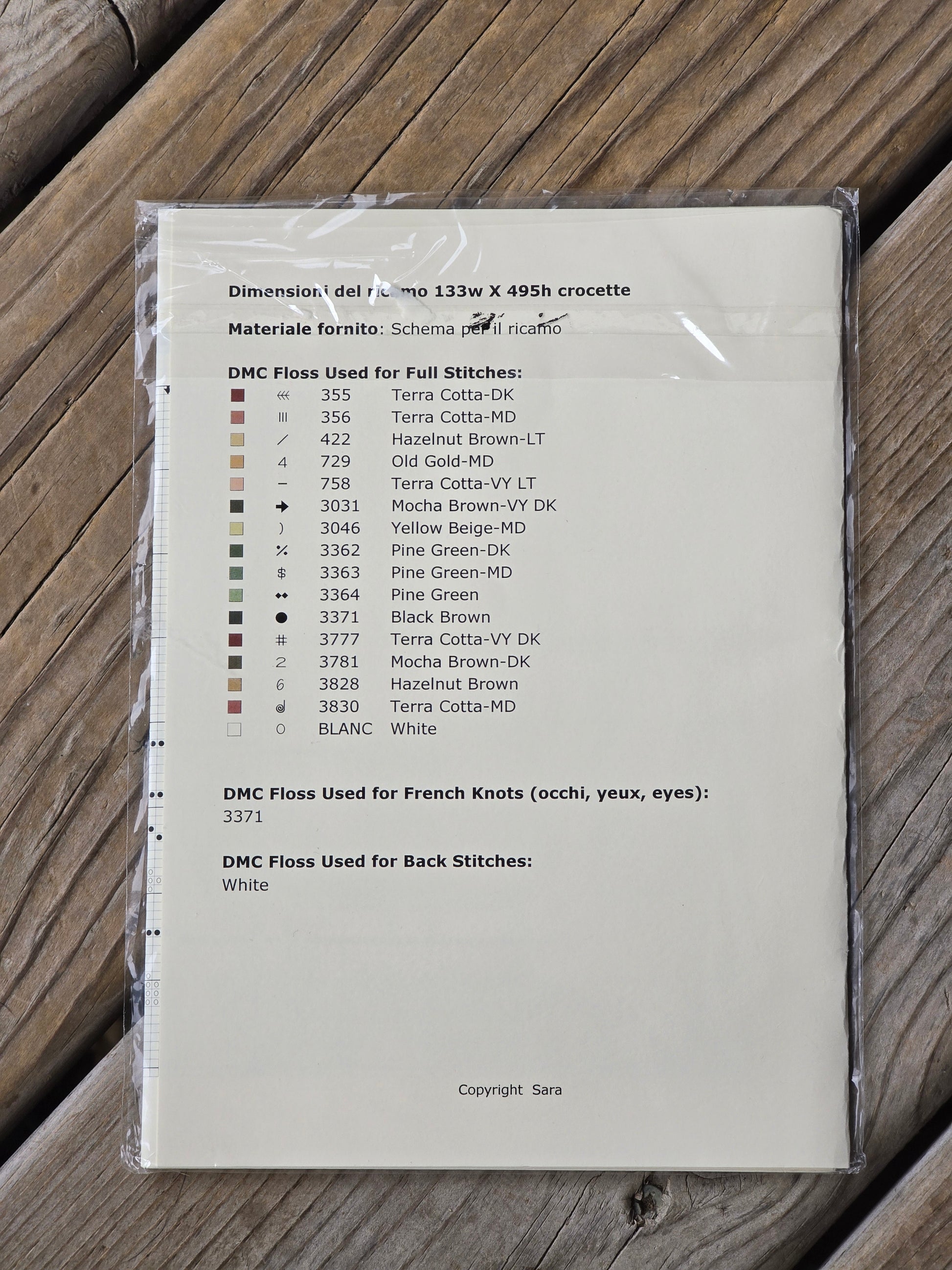 Hangin' Santa cross stitch pattern. Sara. Stitch count: 133w x 495h. Estate find. Good condition. In original package. Package opened to confirm full pattern inside.