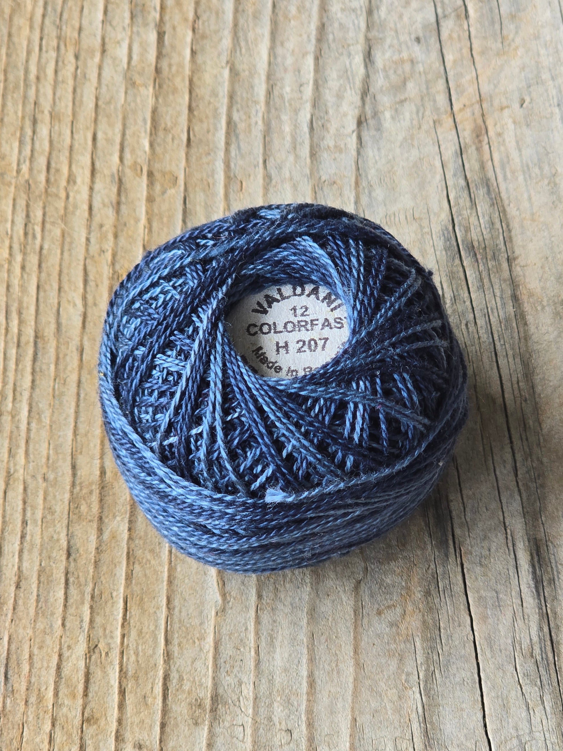 #H207 size 12 Perle cotton. Valdani. 100% long-staple Egyptian cotton. The hand-dying process with lead-free colors ensures vibrant and lasting colors. Known for their unique variegation lengths and are designed to elevate needlework projects. Used for various needlework projects including embroidery, applique, quilting, punchneedle, crochet and rug-hooking to name a few. New, old stock. Color may vary from photo.