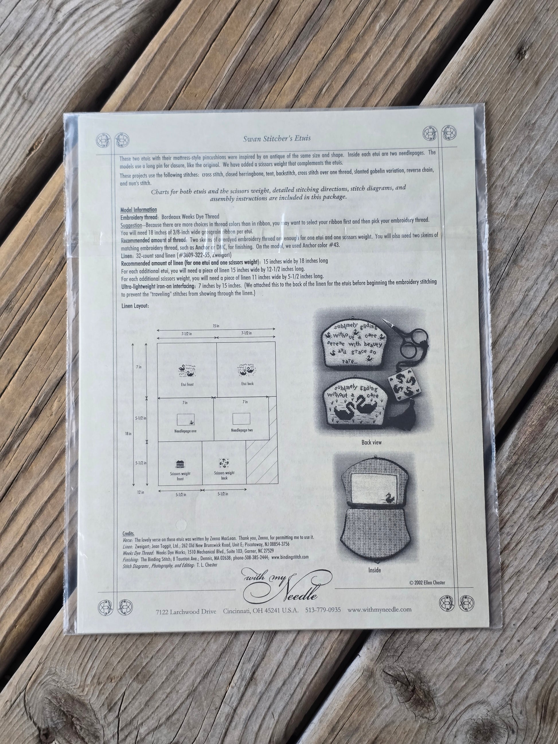 Swan Stitcher's Etuis cross stitch pattern. With My Needle 2002. Estate find. Like new in original package.