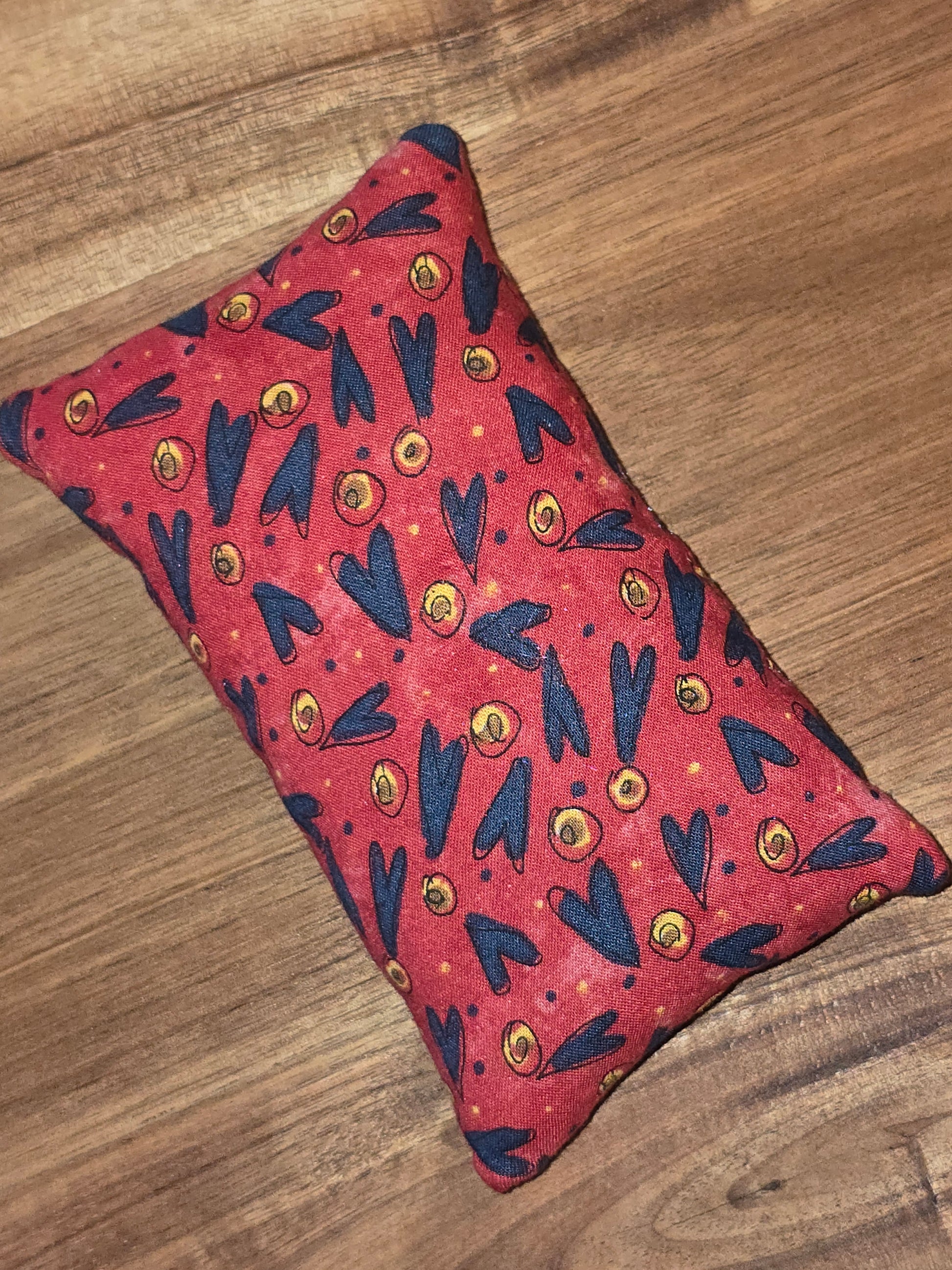 Adorable cross stitched heart pillow. Use as a bowl filler or pincushion. Hand crafted. Approximate size: 3"w x 6"t.
