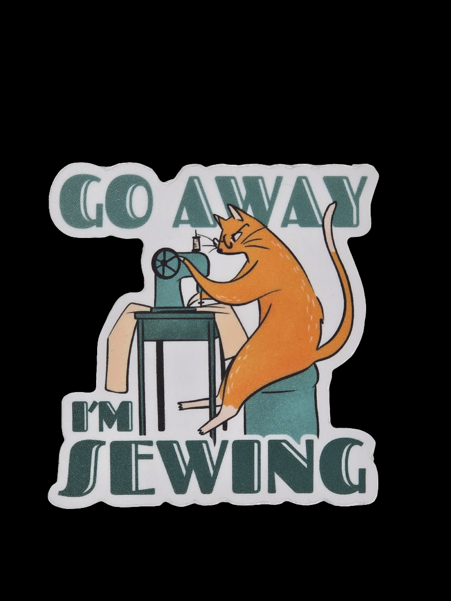 Go Away I'm Sewing Sticker - My Beste Quilt Co. APPROXIMATELY 2.50" X 2.50"