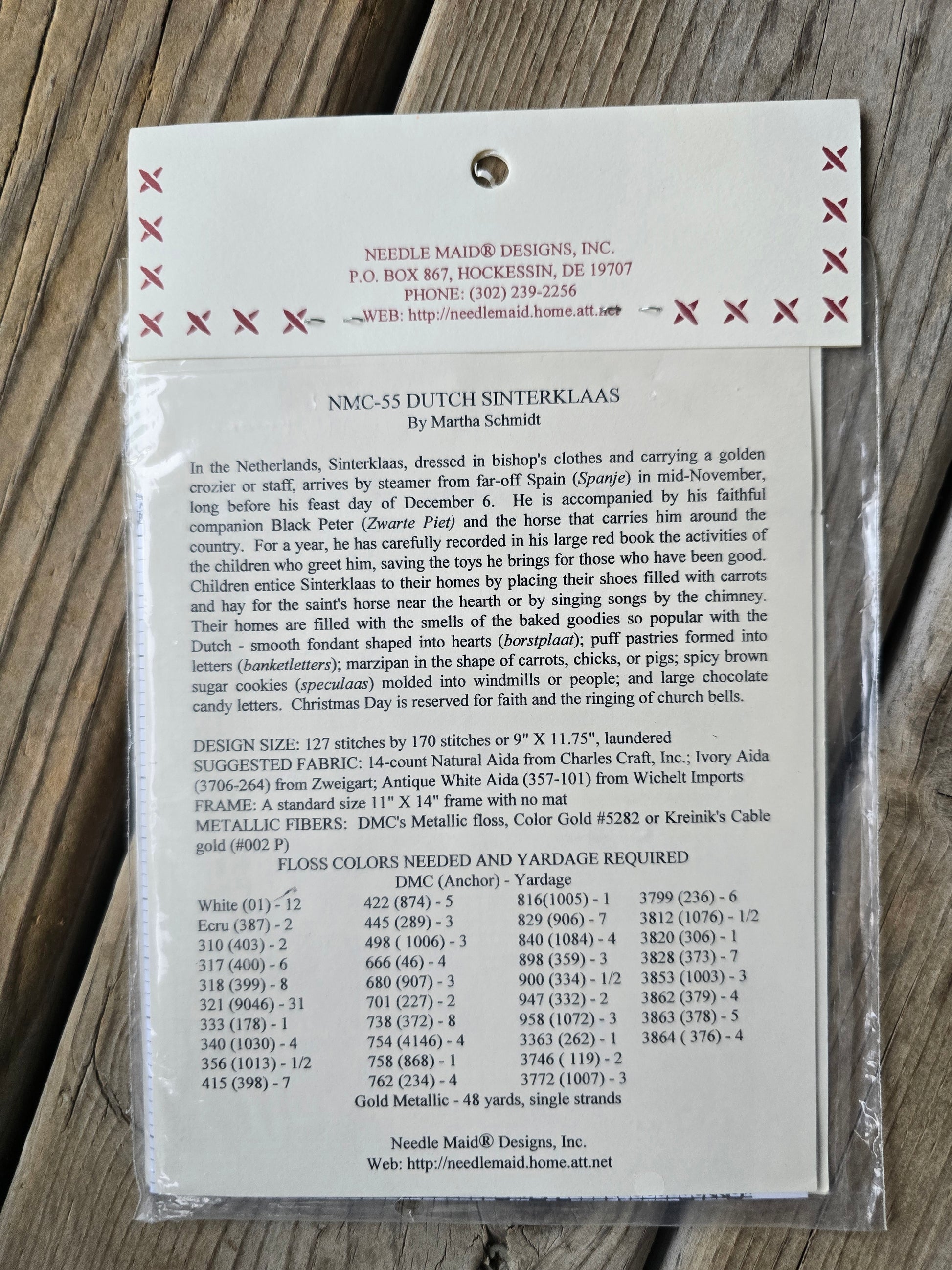 Santa Claus cross stitch pattern. Hinzeit. Design area count: 41h x 185w. Estate find. Cover stapled to chart. Pencil marks on back of pattern. No charms. Used condition. No plastic package.