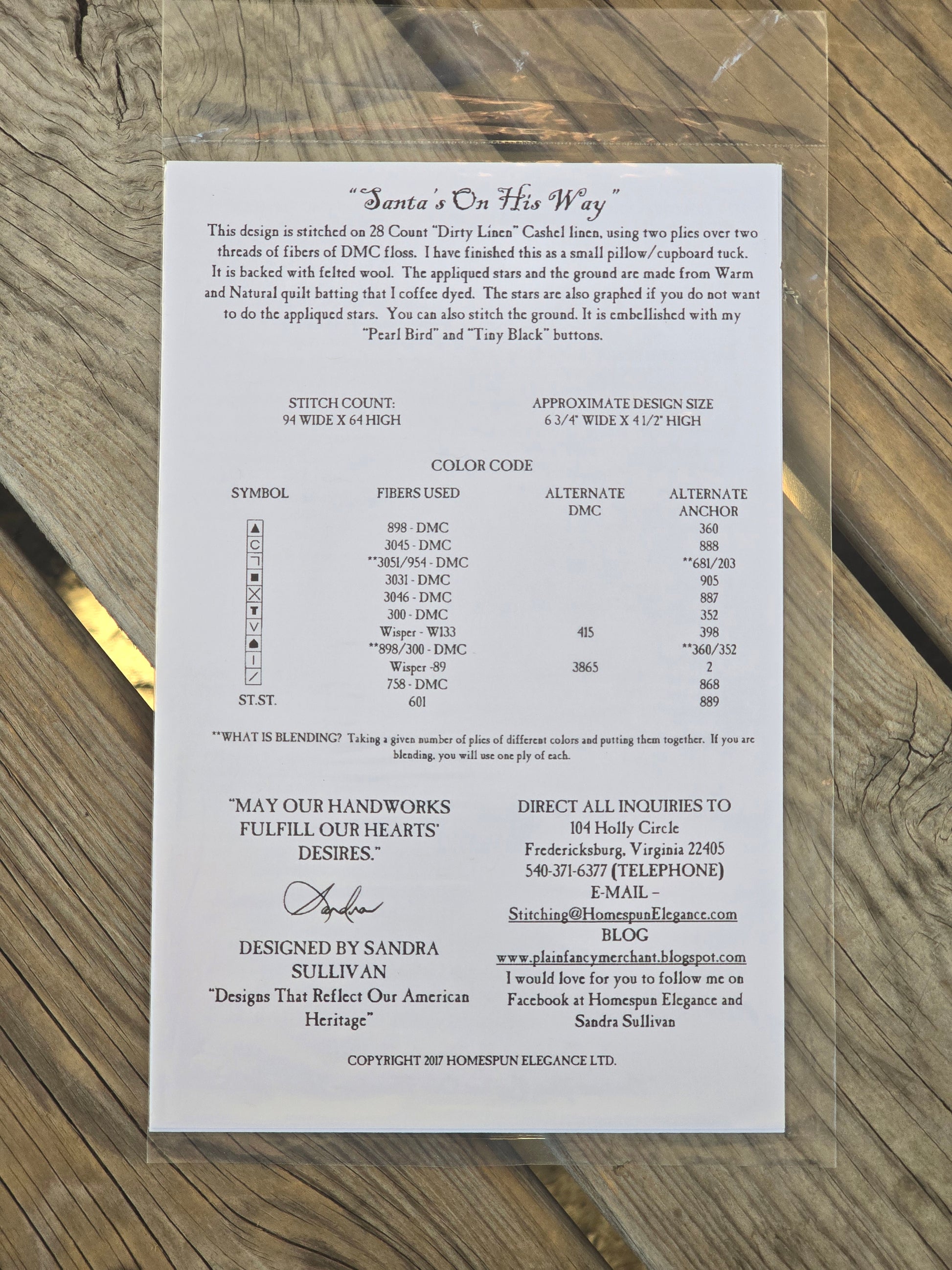 Santa's on his Way cross stitch pattern. Homespun Elegance 2017. Stitch count: 94w x 64h. Estate find. Sealed in original package.