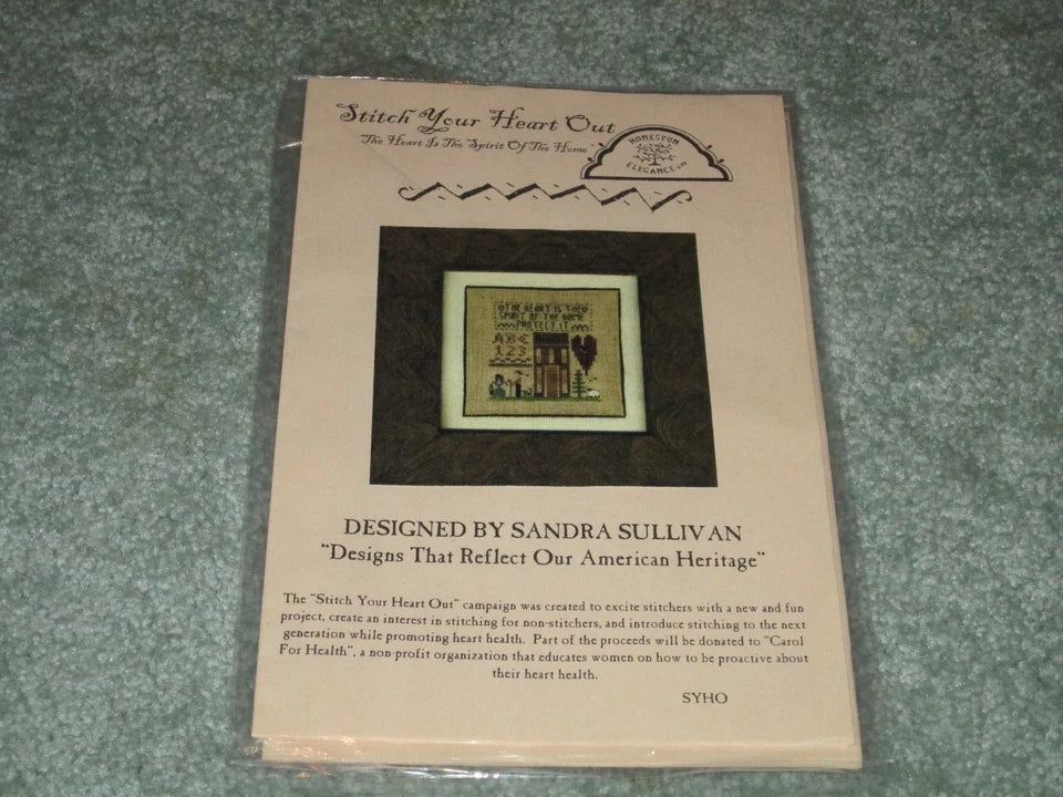 Stitch Your Heart Out cross stitch pattern. Homespun Elegance 2010. From the "Stitch Your Heart Out" campaign. One of 12 patterns for the year long campaign by twelve different designers. Campaign was a fun way to interact with the needlework community and promote Heart health. Stitch count: 44W x 47H. Approximate design size: 2.75"W x 3"H. Estate find. New in package.
