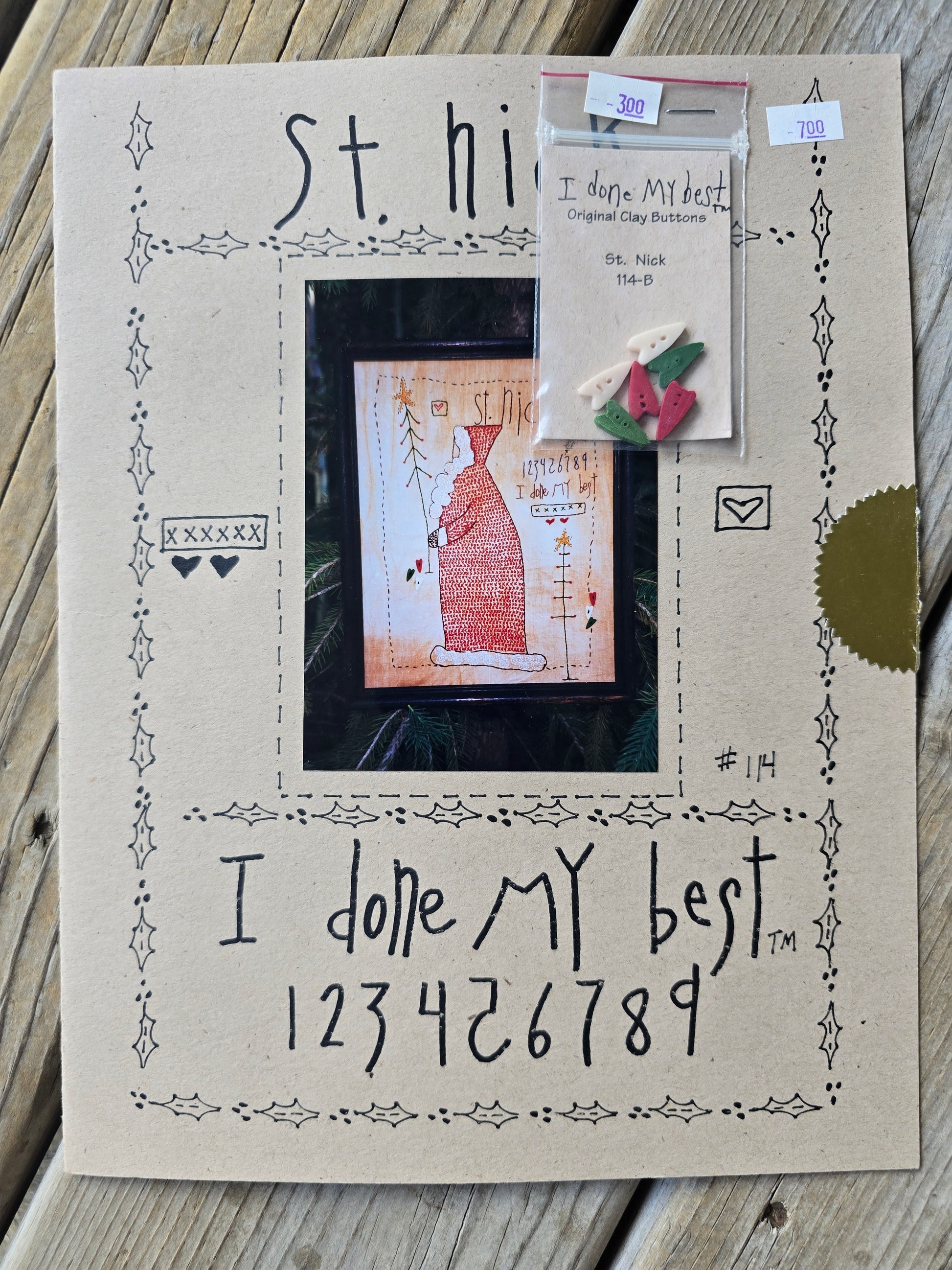 I Done My Best - St. Nick - Embroidery Pattern with Buttons