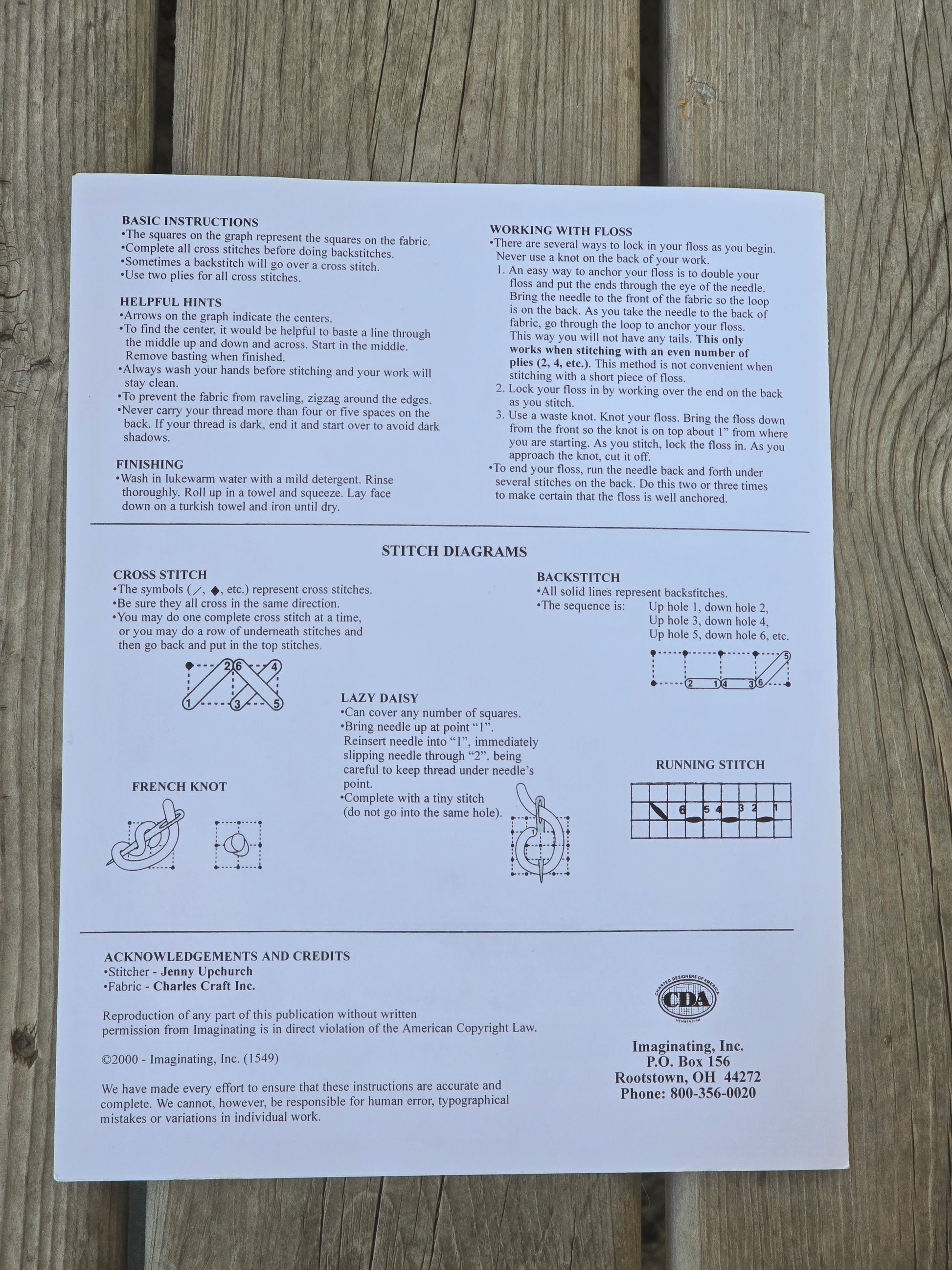 Happy Autumn cross stitch pattern. Imaginating, Inc 2000. Design size: 103h x 130v. Estate find. Like new.