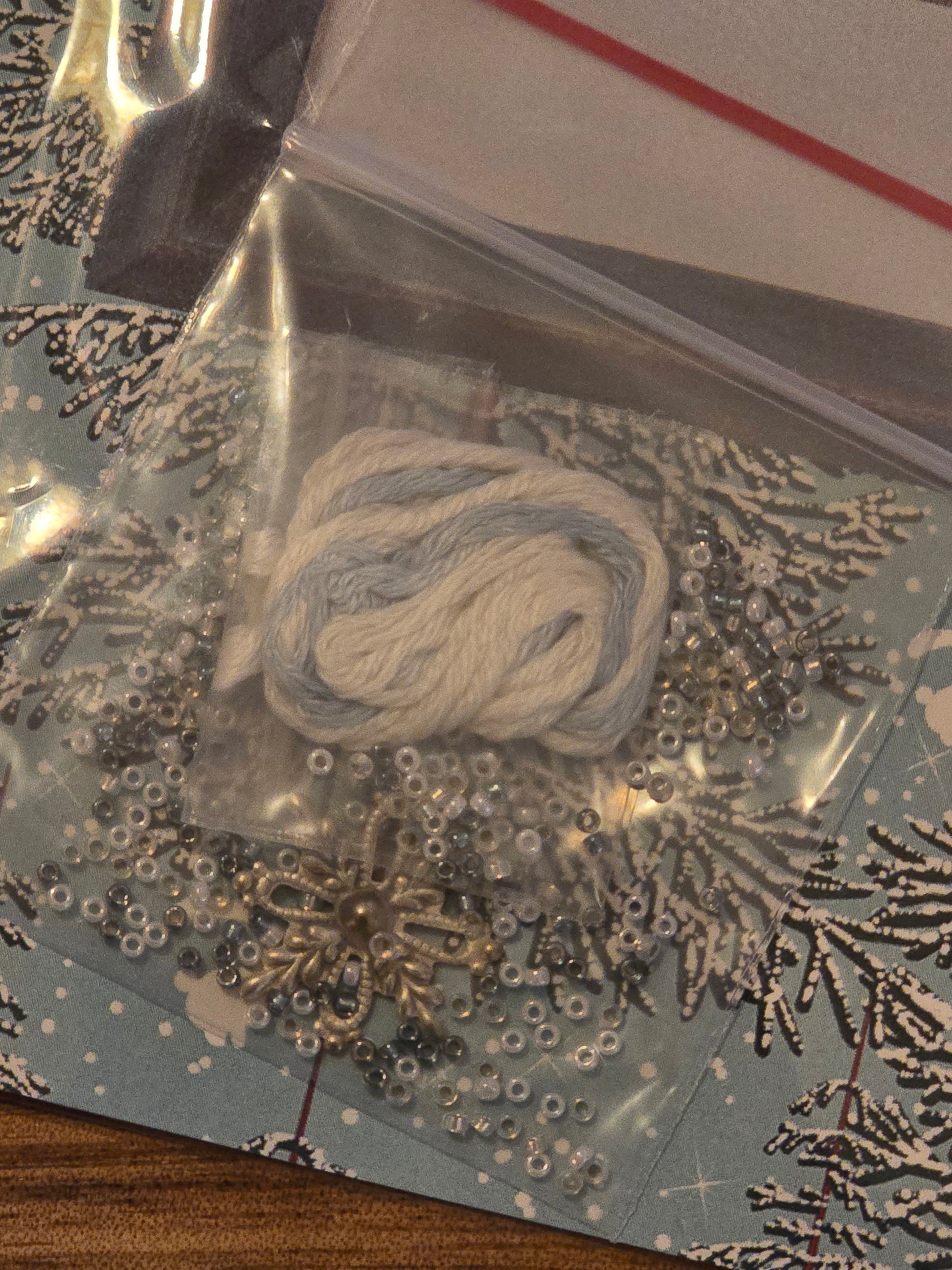 Winter Typography cross stitch pattern with embellishments. Just Nan. Design area: 87h x 87w. Included embellishments: beads and charm. Estate find. Like new in original package.