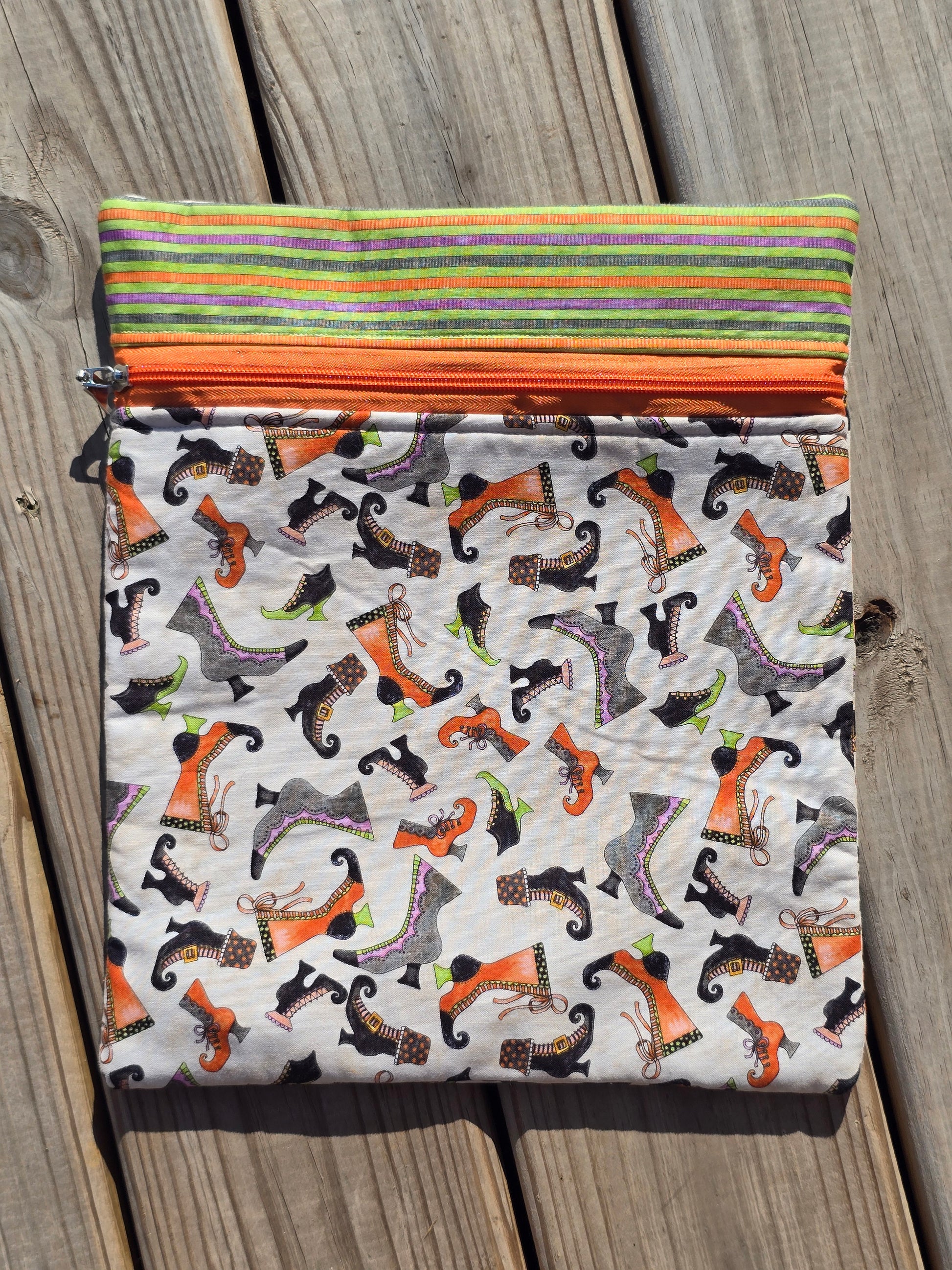 Witches Boots cloth project bag. K Heinz Designz 2025. Size: 11" x 13". Handcrafted in Northwest Indiana.